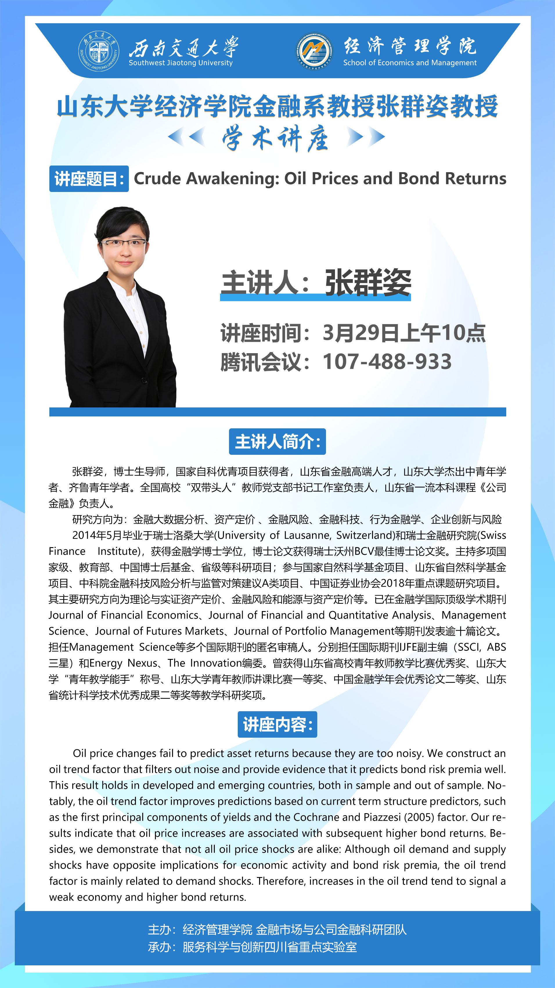 山东大学经济公司金融系教授张群姿教授学术讲座