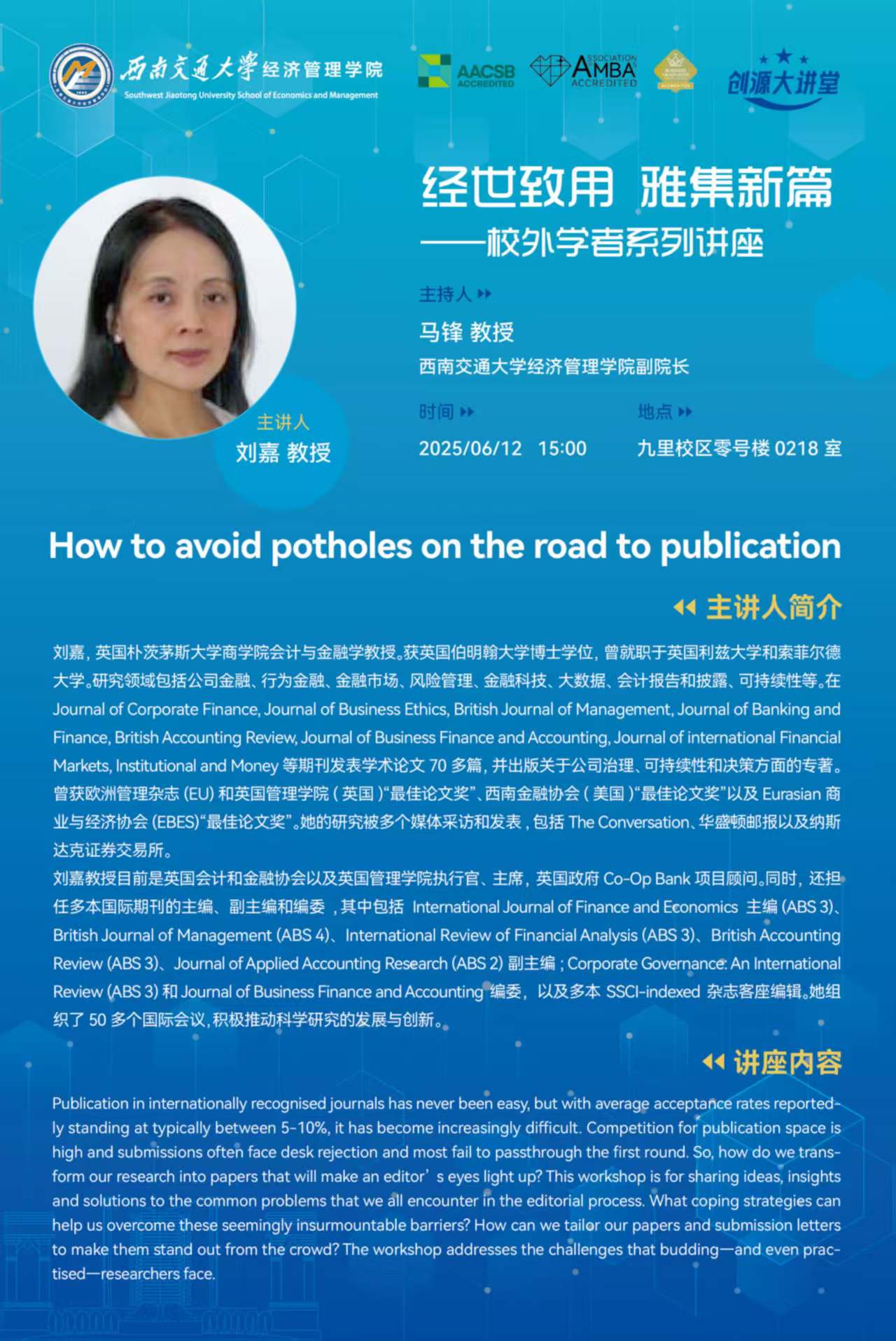 英国朴茨茅斯大学商公司刘嘉教授学术讲座