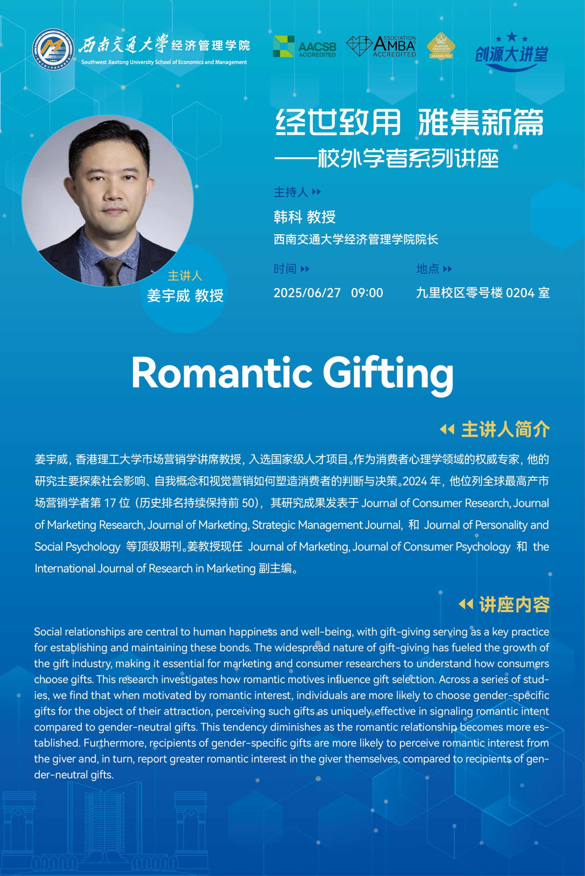 香港中文大学姜宇威教授学术讲座