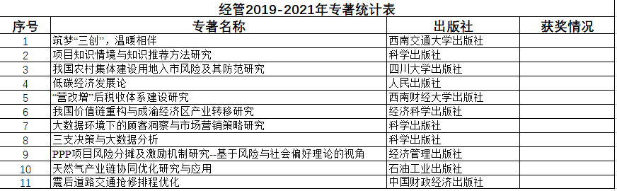 2019-2021年出版专著统计