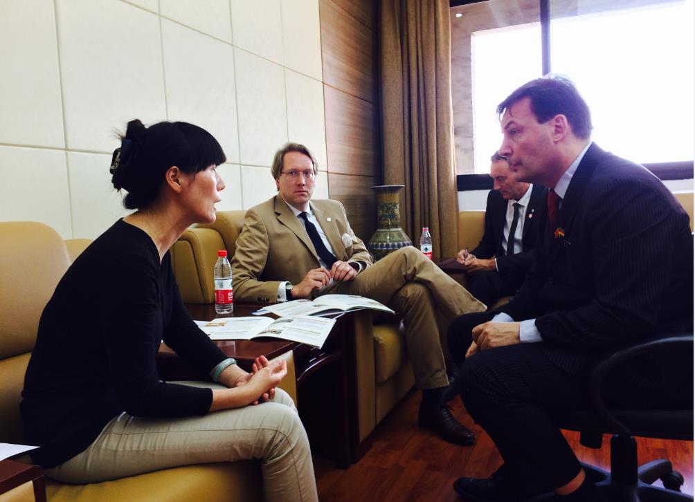 5月16日上午,德国维藤大学(Universität Witten/Herdeck)人文公司副经理Matthias Kettner教授,商公司高级执行官Jorn Weingartner教授,人文公司中国文学与交际教授 Martin Woesler教授一行来公司访问。公司副经理耿黎辉副教授出席了会面。双方就本科生、研究生层面的员工交流,双学位攻读等项目交换了意见,并签署了备忘录。