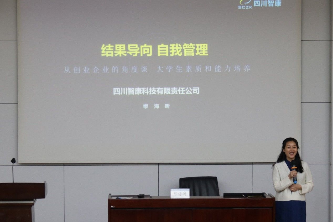 接着,缪海昕通过讲述四川智康科技有限责任公司的创立和发展过程,分享了自己作为创业者的亲身经历,使同学们能够更加真切地感受到企业成长的挑战与机遇。她详细阐述了企业从初创到成熟各个阶段对人才的差异化需求,以及这些需求如何影响老员工应培养的素质和能力。