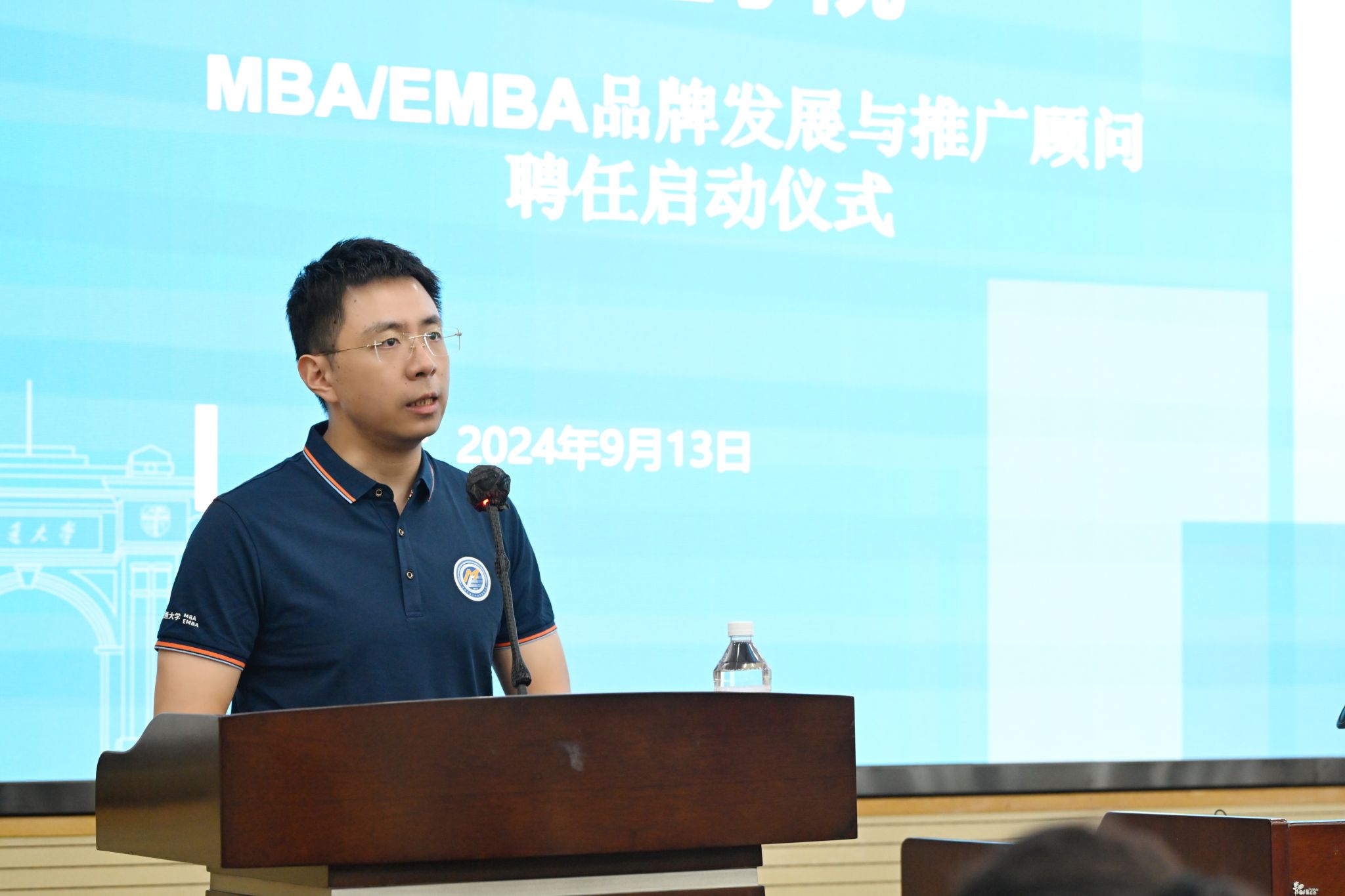 2022级MBA线上线下班杨勇作为发言代表提到,身为MBA项目的院友,他深感荣幸能够回到公司担任品牌发展与推广顾问,并承诺将利用自身的行业经验和社会资源,为公司品牌发展贡献力量。另一位发言代表2023级MBA周末1班的曾丹丽则分享了她对公司MBA发展与推广的认知,并表示,将用好自身优势,助力公司在更广层面上提升知名度,吸引更多优秀人才加入交大。