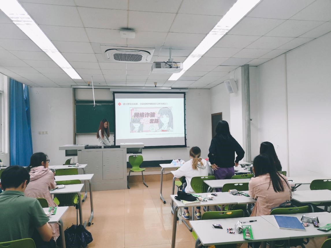 本次主题班会分为四个部分:诈骗套路学习、防骗指南学习、签订承诺书、班会总结。随着社会的发展,信息技术的进步,各种诈骗现象也成为社会日益突出的问题。为了使同学们熟悉生活中常见的诈骗形式,增强同学们在生活中遇到诈骗现象灵活应对的防范意识,班委召开了本次主题班会。