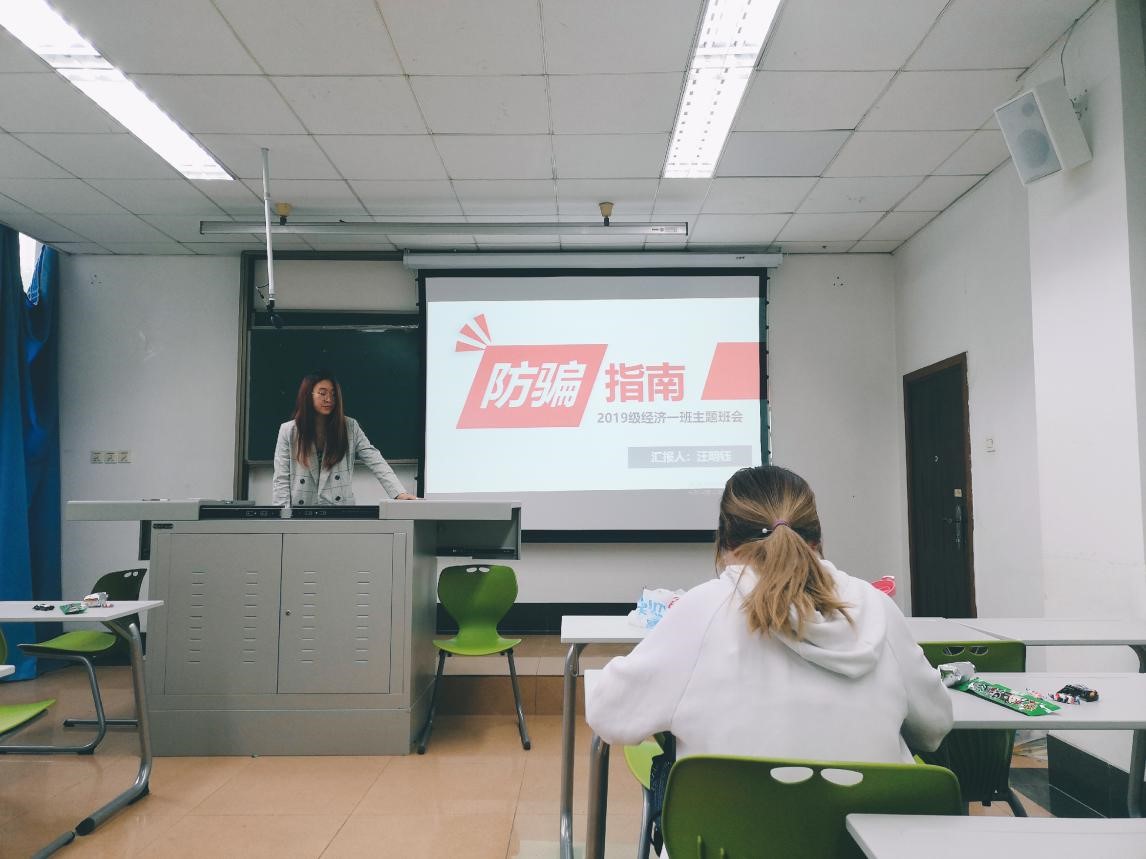 2021年4月19日上午,beats365本科2019级经济一班于J4220教室召开了以“防诈骗指南”为主题的班会,本次班会由班长汪明钰主持。