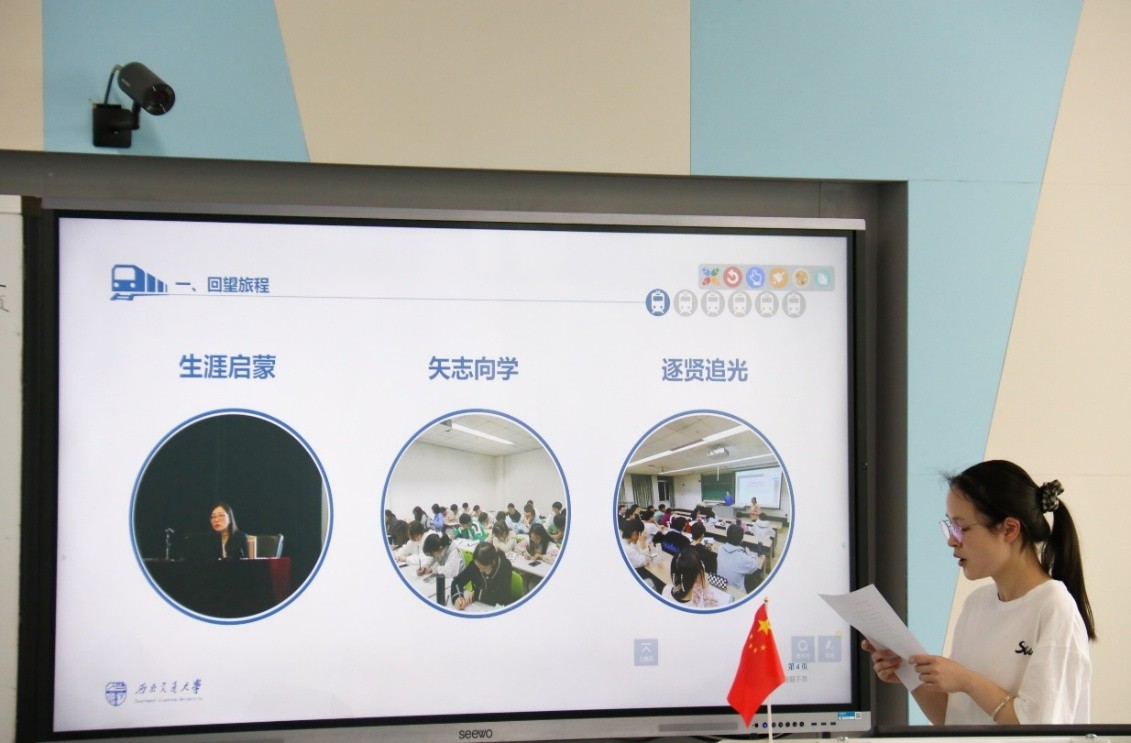 首先,班长卢奕带大家一起回望班级的旅途站点,总结班级系列活动情况,回顾班级成长经历。生涯启蒙站,人才招聘处就业指导科科长陈曦轶为我们开展了新生生涯规划讲座;矢志向学站,预告本学期将开展生涯规划系列活动,班主任就专业分流、生涯规划等方面给予同学们建设性意见;逐贤追光站,老师以及学长、学姐为我们开展了一场专业分流经验分享活动,从学习方法、就业方向等方面为同学们做详细介绍。