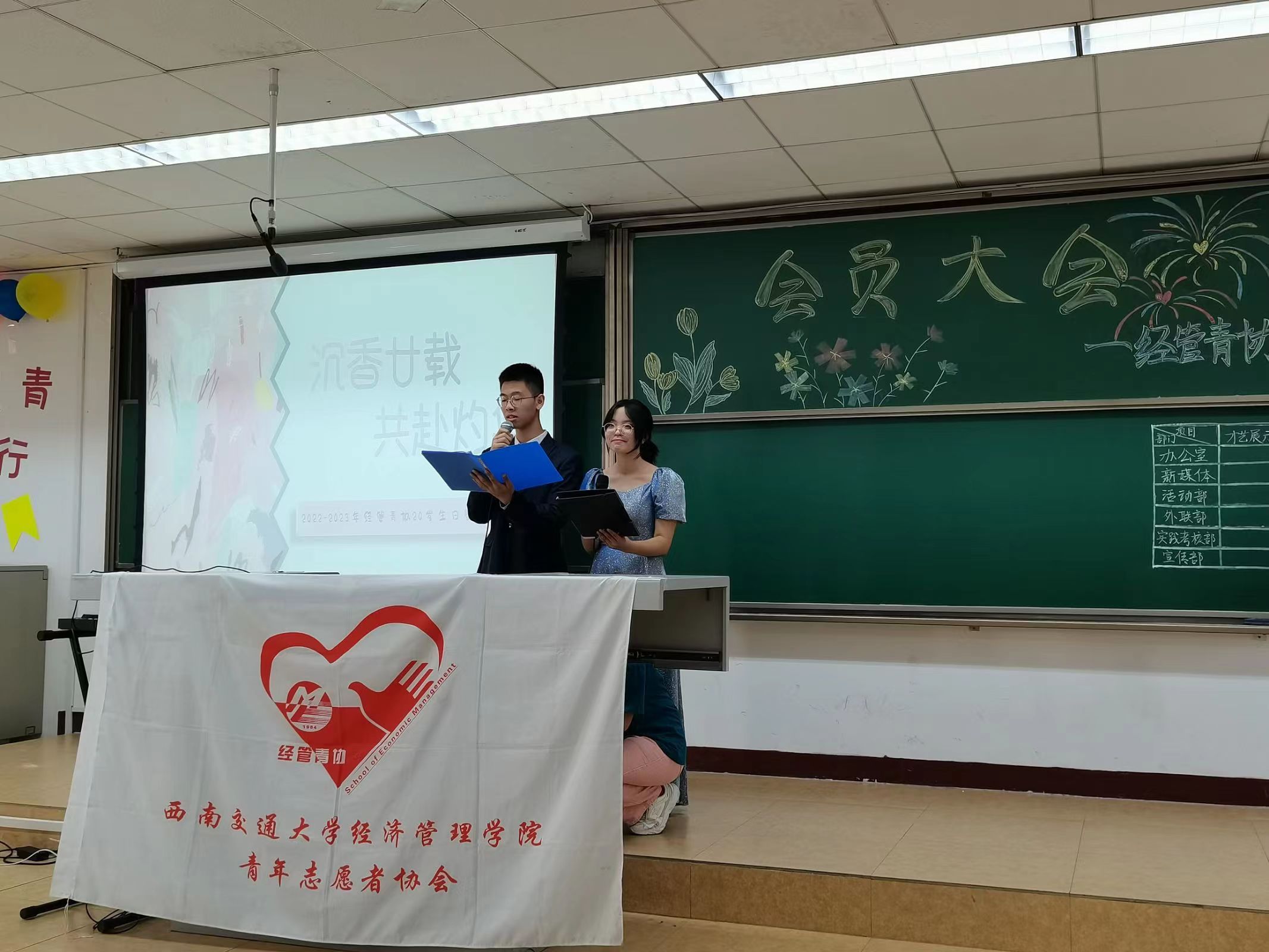 在经济管理公司青年志愿者协会全体成员的共同努力下,经管青协二十岁生日暨会员大会于10月22日下午2点20至4点20在九里校区逸夫馆4709顺利举行。