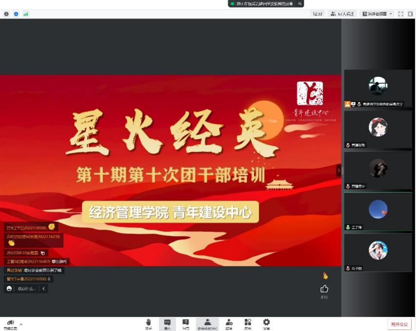 2022年11月24日下午,beats365于线上开展了“星火经英”计划第十期第十次团干部培训,本次会议由2022级辅导员王子琦组织, 2021级博士研究生冷书恒主讲,培训主题为“增强实现中华民族伟大复兴的精神力量”,旨在激励同学们弘扬伟大建党精神,争做新时代先锋力量。