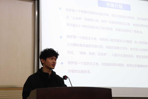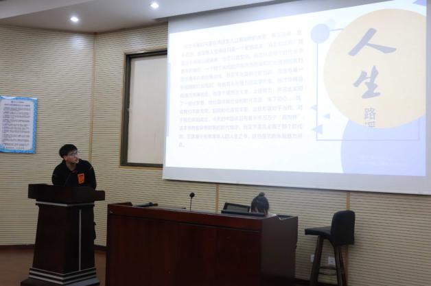 活动开始,主持人向同学们介绍了此次活动的受邀嘉宾,并简要说明了活动的评分规则。随后,前四位选手上场介绍了自己喜爱的书籍并分享了他们的读书感悟,他们分别向大家介绍了《人生》、《鼠疫》、《政治学》、《始于极限》这几本书。他们在分享过程中提到自己对读书与人生的感悟,让同学们认识到一本好的书籍能引发人们对人生的思考,能让心灵在喧闹的现实生活中寻一处静谧的港湾,这便是书籍的魅力。