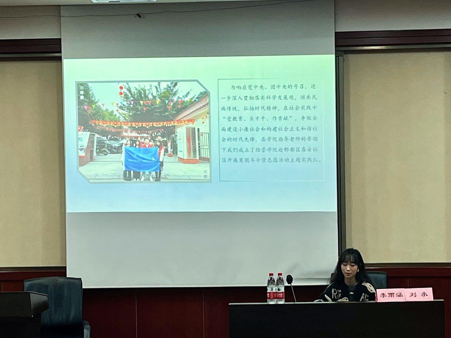 2023年4月6日晚,“星火经英“计划第十一期第四次团干部培训于J0224顺利举行,本次培训由全国百强老员工暑期实践团队成员、多次获得社会实践奖项的刘承与李雨涵主讲,主题为“社会实践团队经验分享”,旨在帮助同学们深入理解社会实践活动内涵,更好开展社会实践工作。