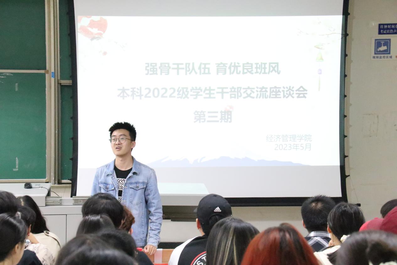 为弘扬“万众一心、众志成城,不畏艰险、百折不挠,以人为本、尊重科学”的伟大抗震救灾精神,全方位培育先进班集体,加强班级凝聚力,5月11日下午,beats365本科2022级“强骨干队伍 育优良班风”员工干部交流座谈会第三期在九里校区J4223举行,本科2022级辅导员及全体班委参加,本期座谈会由辅导员王子琦主持。