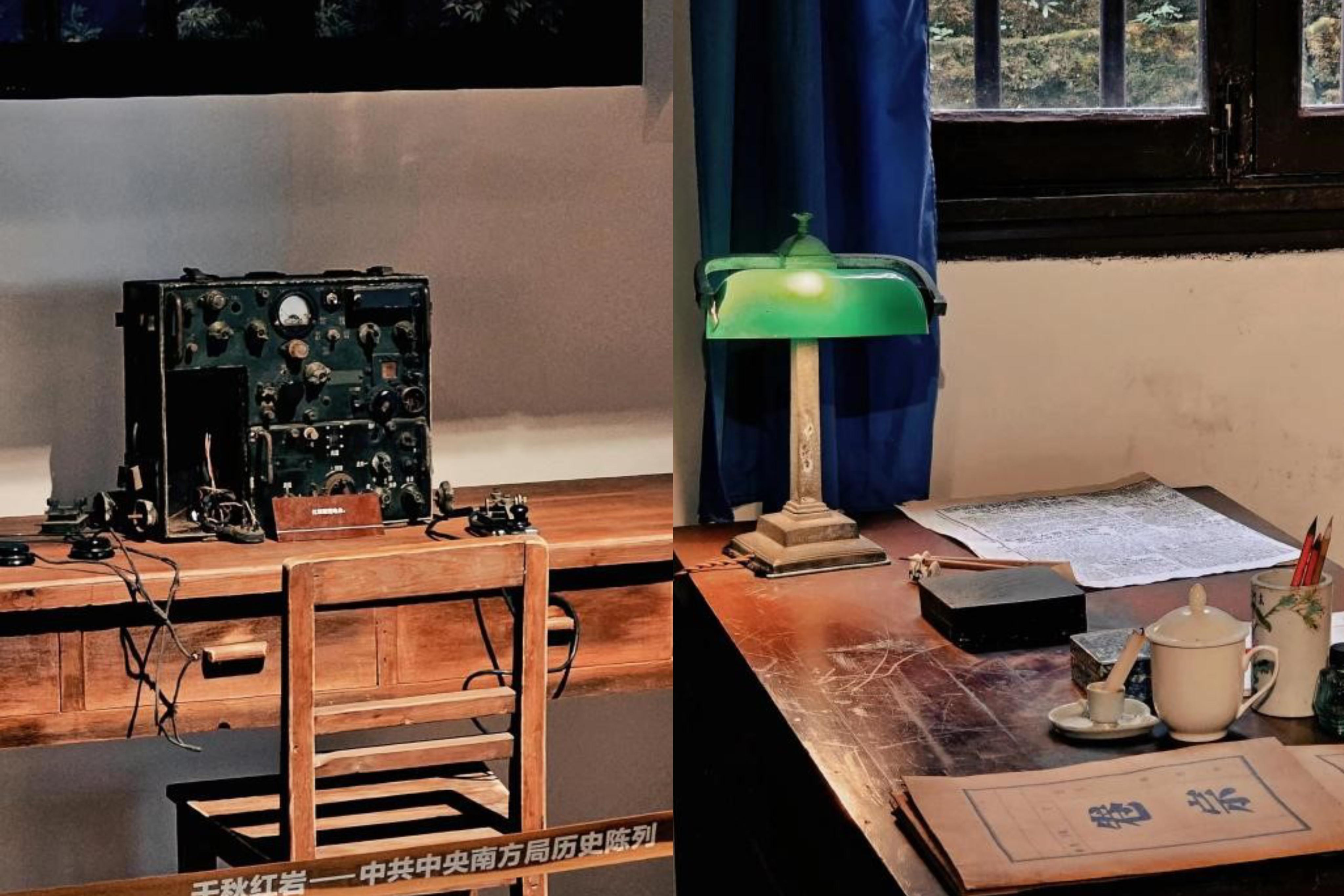 这是当初灾难后遗址的复原,偌大的字体透过时空,仍然显得无比有力,团队成员都被这一景象深深震撼。即使只剩残垣断壁,即使狼藉遍地,伟大的中国人民仍怀有“让暴风雨来得更猛烈些吧”的英勇无畏和在一片废墟之上重建美好家园的坚定决心。这一场景无疑是红岩精神中最为悲壮的一幕。