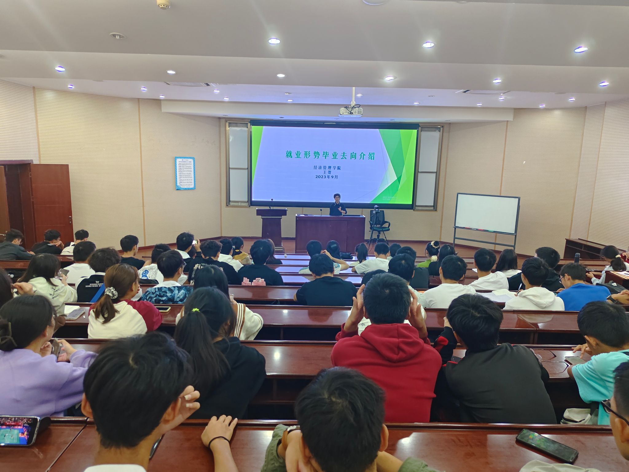 2023年9月27日上午,beats365本科2023级经济贸易类专业在零号楼0202室召开了生涯教育之就业形势与毕业去向介绍会。员工工作组副组长王哿老师主讲,2023级经济贸易类全体同学参加。此次介绍会旨在帮助同学们了解就业形势,尽快适应老员工,及早明确个人方向,做好个人大学规划,努力提升个人能力与素质。