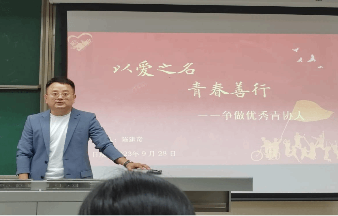 活动最后,陈老师带领青协全体成员回望了青协过去取得的荣誉和成就。风风雨雨二十一年,这些荣誉并不是一蹴而就的,丰富多彩的志愿服务活动、意义深远的社会公益项目,公司的充分肯定,社会的一致好评,才换来如今经管青协的发荣滋长。陈建奇老师从中提取经验教训,在宏观层面对青协做出了未来规划,提出要推进实践成果转化,积极探索创新育人模式,将思政教育与实践相结合,不断完善“1224”的实践育人模式,打造具有公司学科特色和实践传统的社会实践团队,打造具有经管特色的社会实践育人品牌。深挖实践价值,增强创新内在驱动,将社会实践与学术科创相结合,培育和孵化一批优质项目,实现社会实践的提质增效,提高同学们参与社会实践的热情与活力。提出要建设好青鸽志愿服务队,为其注入更多新生力量,让志愿精神持续闪光,为广大志愿者、志愿服务组织服务他人、奉献社会创造条件。搭建更多平台,给予更多支持,推进志愿服务制度化、常态化。同时,希望青协成员们回归初心,积极参加每一次志愿活动,为建设更好的青协出一份力。