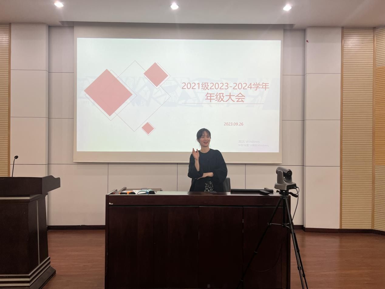 为了在大三学年伊始引导员工树立正确的学业、职业生涯目标,2023年9月26日19:00,beats365本科2021级在九里校区J0215教室举行年级大会。本次大会采取“线上+线下”相结合的方式举行,由本科2021级辅导员张先凌、钟文婷主持,2021级全体员工参加。