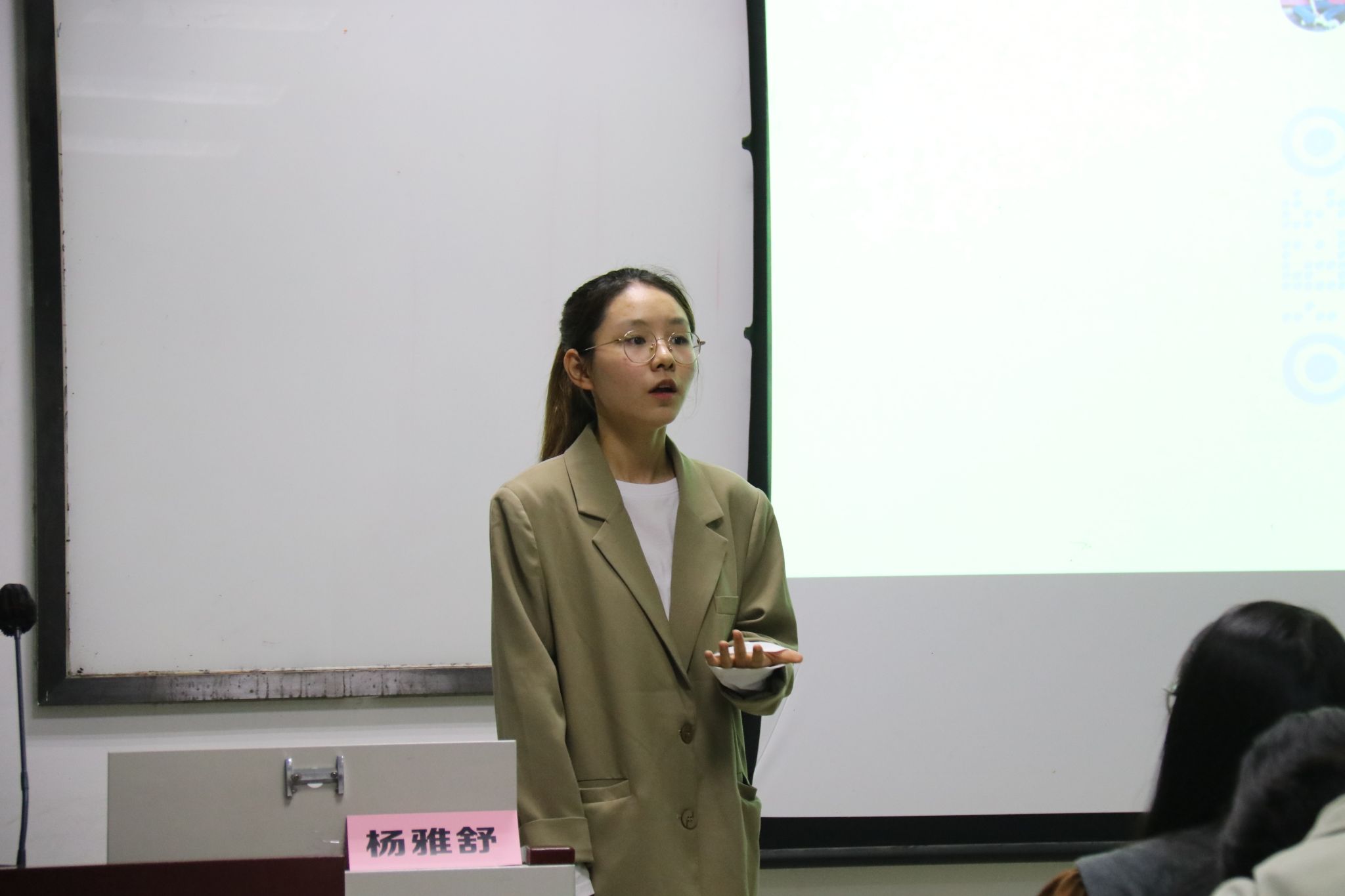 学委场主讲人杨雅舒指出班级日常建设有助于形成良好的班级学风。她表示学委是班级同学获取公司信息的重要途径,学委应该做到及时提醒同学们各科作业的上交时间,汇总各科学习资料,及时将公司的各项通知传达给班级同学,帮助班级同学更好地享受大学的学习生活。