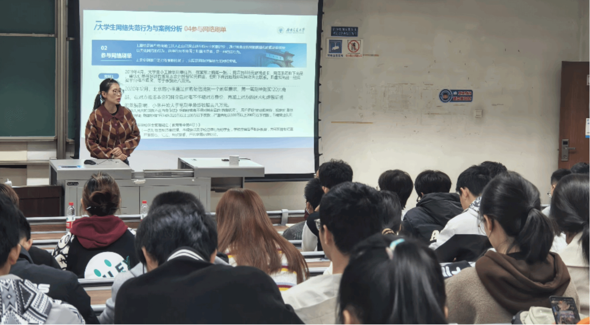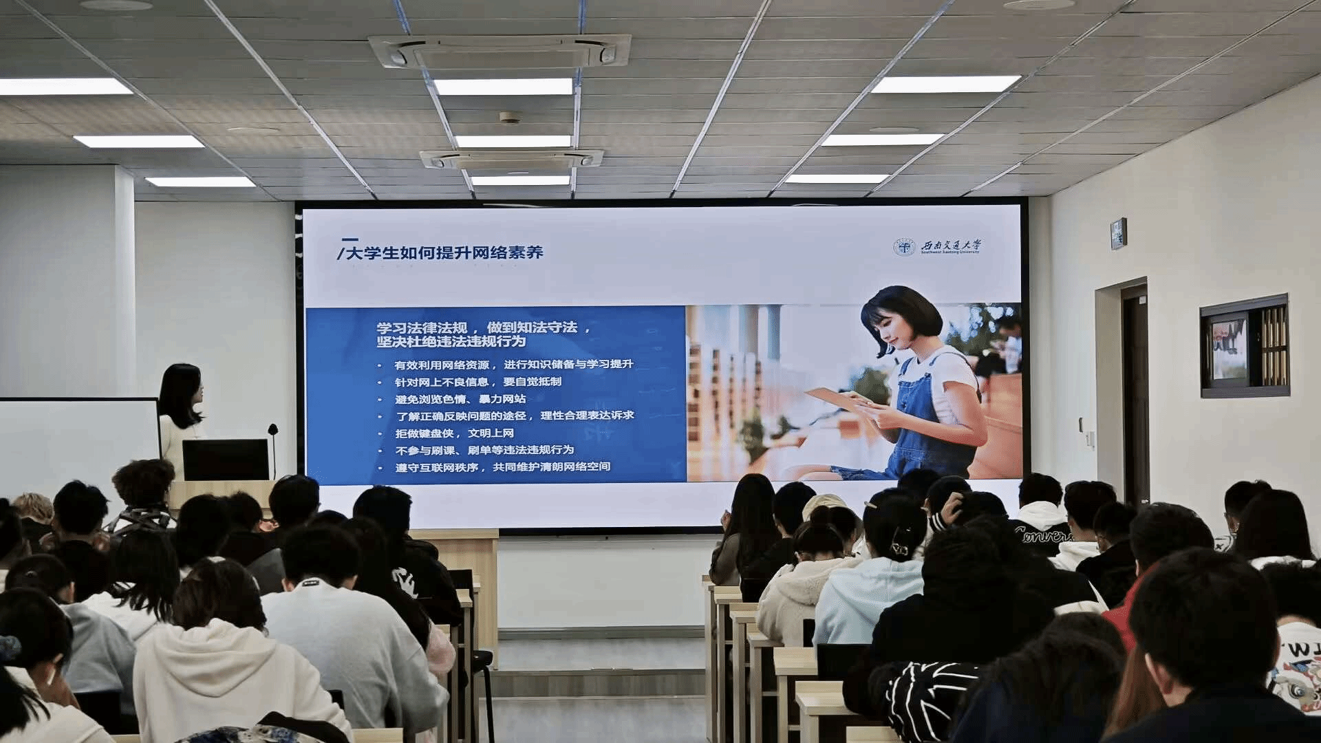 首先,各班班长在网络素养教育主题班会上通过播放科普短片、列举常见的诈骗手段、讲解被诈骗实例,提醒同学们正确认识网络安全,提高同学们对网络素养的重视程度。同时,各班班长针对如何防范诈骗和被诈骗后如何处理的问题进行详细讲解,强调遇到诈骗应冷静处理,及时告知家长和老师。
