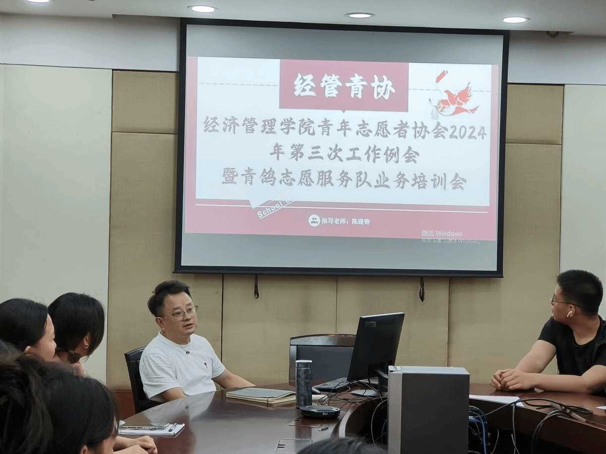 会议正式开始前,青协新一届干部们进行了自我介绍及新一学年工作任务分配,促进对彼此工作内容的熟悉,为之后在工作中的交流与合作顺畅且高效,建立起稳固而积极的沟通桥梁。会议开始后,指导老师陈建奇依据青协的组织框架及团队建设,详尽阐述了各部门的工作任务,明确了各部门的责任范畴,并针对各部门在实际操作中遇到的难题,给予了具体的意见与改进建议,例如需要加强部门之间的沟通、加强青协宣传、保持与志愿服务基地的联系、明确各部门负责的工作、确保活动有效举办等,陈建奇着重指出,在工作实践中,应采取前瞻性视角审视问题,拓宽思维视野,立足长远规划,以驱动经管青协在各项工作事务中不断成长与繁荣。