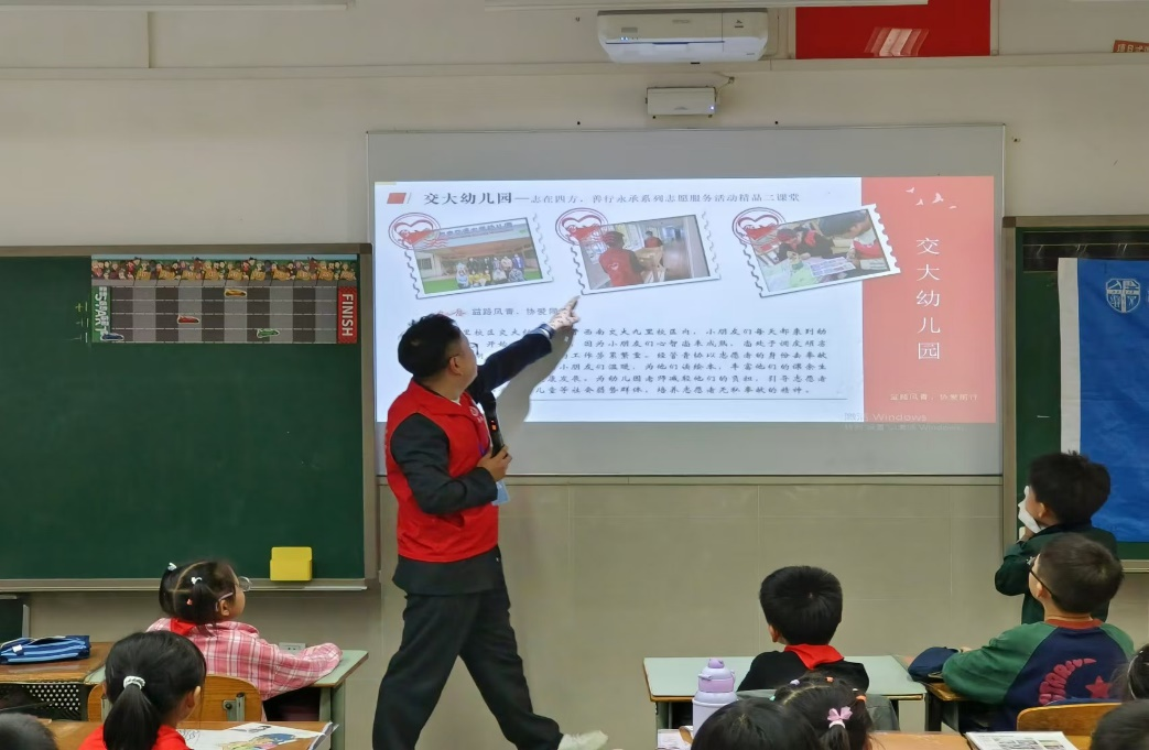 来到益州小学二年级十三班的课堂,陈建奇首先向小朋友们介绍了团队的成员以及经管青协的组织架构和概况,其中涵盖了各个部门的具体介绍及其职责,还包括阳光家园、敬老院、善工家园、交大幼儿园等志愿服务基地,以及爱心雨伞、旧衣回收、阳光义卖等青协品牌活动。随后,陈建奇对青鸽志愿服务队进行了介绍:“青鸽志愿服务队是beats365团委青年志愿者协会下属的公益队伍。志愿通过助老、助农、扶弱、扶幼等服务活动,为社会公益赋能,助力乡村振兴。”