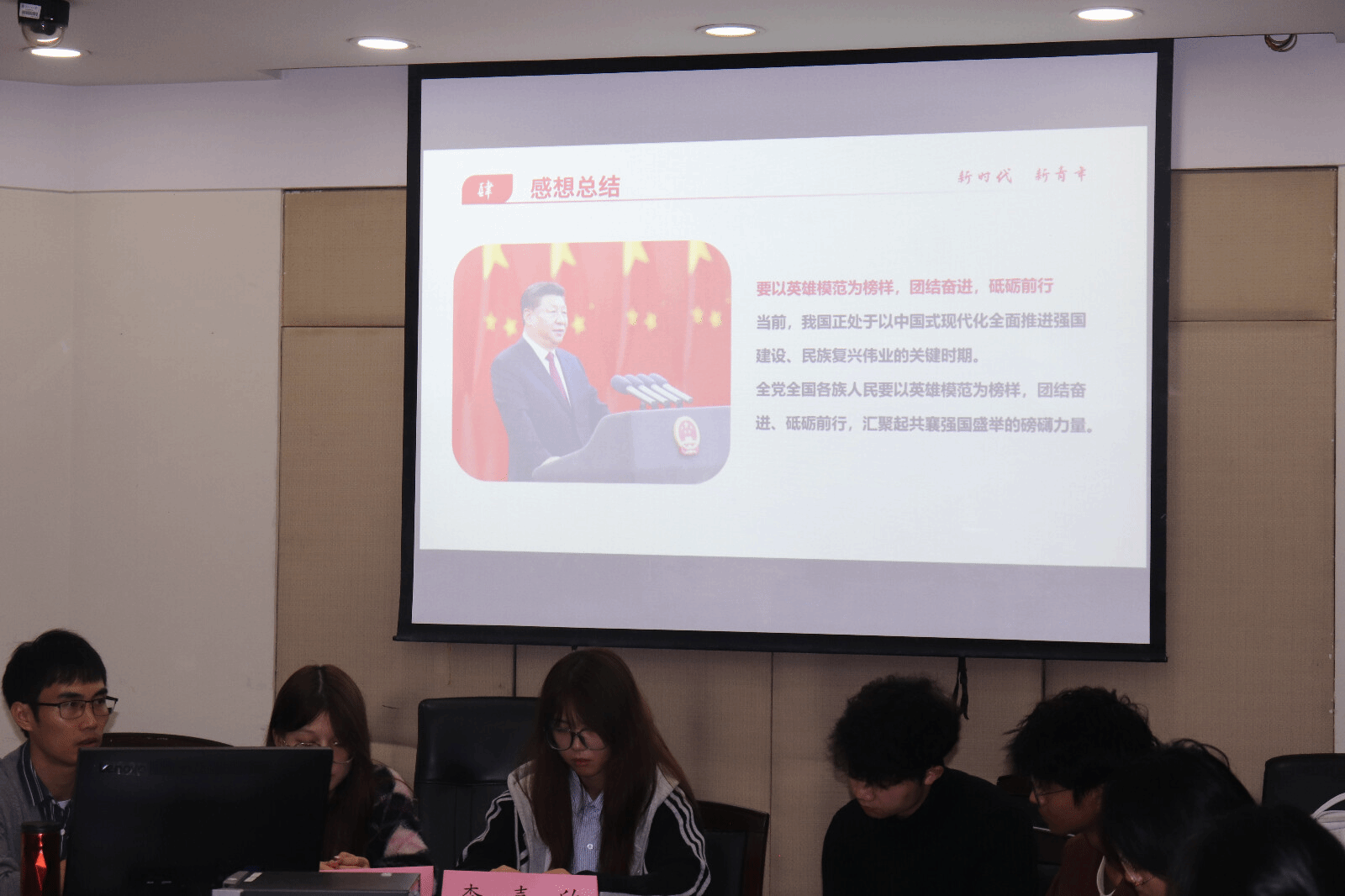 本次理论学习围绕学习习近平总书记在国家勋章和国家荣誉称号颁授仪式上的重要讲话展开。苏扬老师从共和国勋章和国家荣誉称号的颁发背景、获奖情况、人物事迹等方面进行讲解,带领同学们共同学习共和国勋章和国家荣誉称号及友谊勋章获得者的光荣事迹和伟大精神。他期望同学们时刻铭记英雄事迹,把“为人民服务”落到实处,在员工工作中践行为同学服务的宗旨。