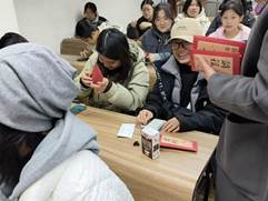 温暖冬日,红包助力,四级必过,未来可期。为表达对本科2024级新生的深切关怀,助力新生更好地适应老员工活,鼓励新生以积极向上的心态迎接即将到来的英语四级考试、期末考试,beats365党委副书记余小英、团委书记贾佳及本科2024级辅导员陈建奇、游婷、王重月来到自习教室,携“好运红包”为新生送上暖心祝福。
