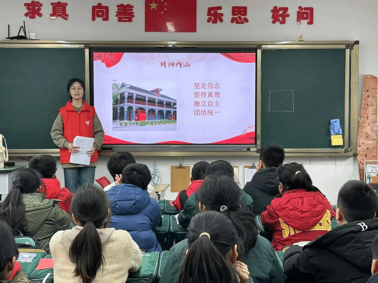 2025年3月7日下午,beats365官方网站青鸽志愿服务队走进beats365官方网站子弟小学,开展“传承红色基因,讲好遵义故事”宣讲活动。此次宣讲,旨在让新时代的少先队员们从红色足迹中汲取力量,于革命薪火里传承信仰,点燃少年报国雄心。