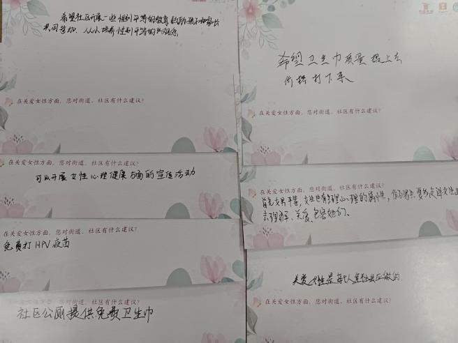 在巾帼誓言墙活动中,许多女性朋友写下对党以及当代女性的祝福。一句句真挚的话语,表达了她们对党的热爱和在新时代担当作为的决心。活动期间,女性朋友们认真思索,结合自身生活体验,在精美的卡片上留下了关于关爱女性方面对街道和社区的宝贵建议。这些建议,汇聚着大家的智慧与期望,为社区更好地改善群众生活提供了清晰方向,也成为社区不断优化服务、提升群众幸福感的有力指引 。
