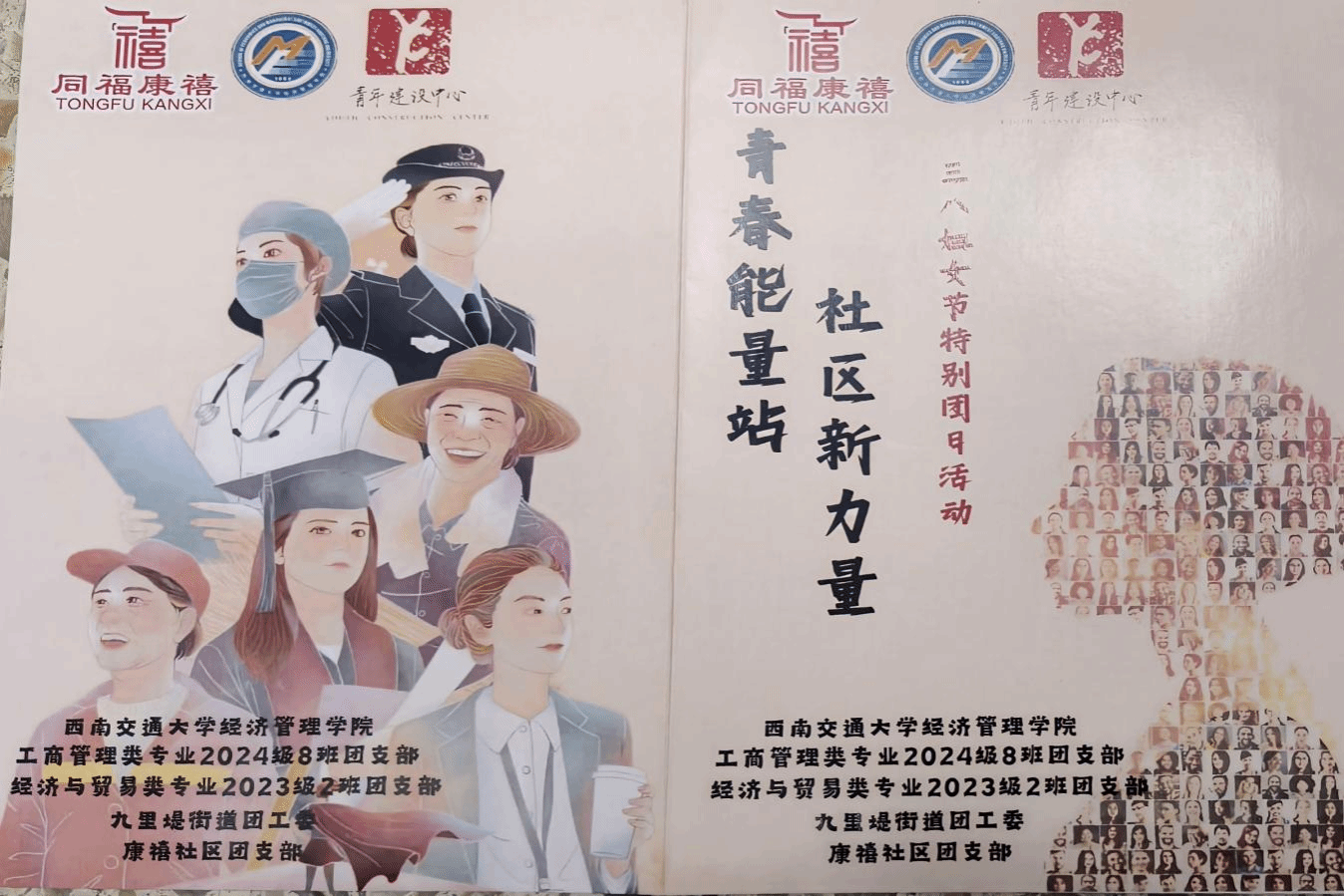 为庆祝“三八”国际劳动妇女节,深入学习贯彻党的二十大精神,3月8日,共青团beats365委员会和九里堤街道社区一起开展了“青春能量站,社区新力量——了不起的中国女性”,具体参与本次主题活动的是工商管理类专业2024级8班团支部和经济与贸易类专业2023级2班团支部以及康禧社区团支部。