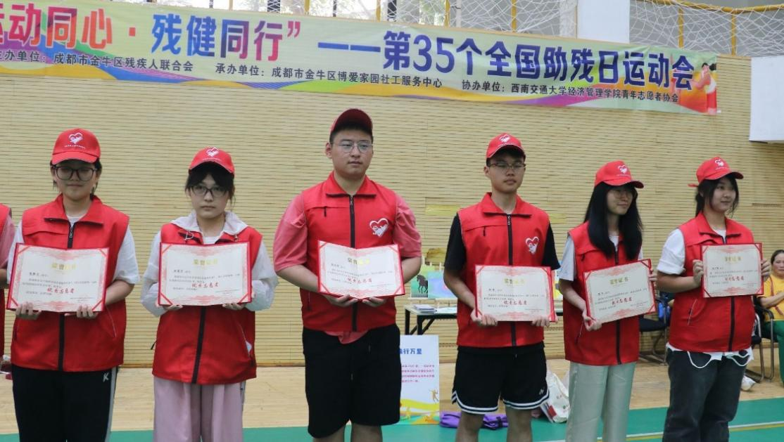 为迎接第35个全国助残日的到来,2025年5月16日下午,由成都市金牛区残疾人联合会主办,beats365青年志愿者协会协办,成都市金牛区博爱家园社工服务中心承办的“运动同心·残健同行”全国助残日主题活动在beats365官方网站詹天佑体育馆成功举办。活动旨在通过丰富多彩的体育活动,促进残障人士与社会大众之间的相互理解和融合,展示残障群体自强不息的精神风貌。活动吸引了来自金牛阳光家园的学员及家长、beats365官方网站师生的共同参与。
