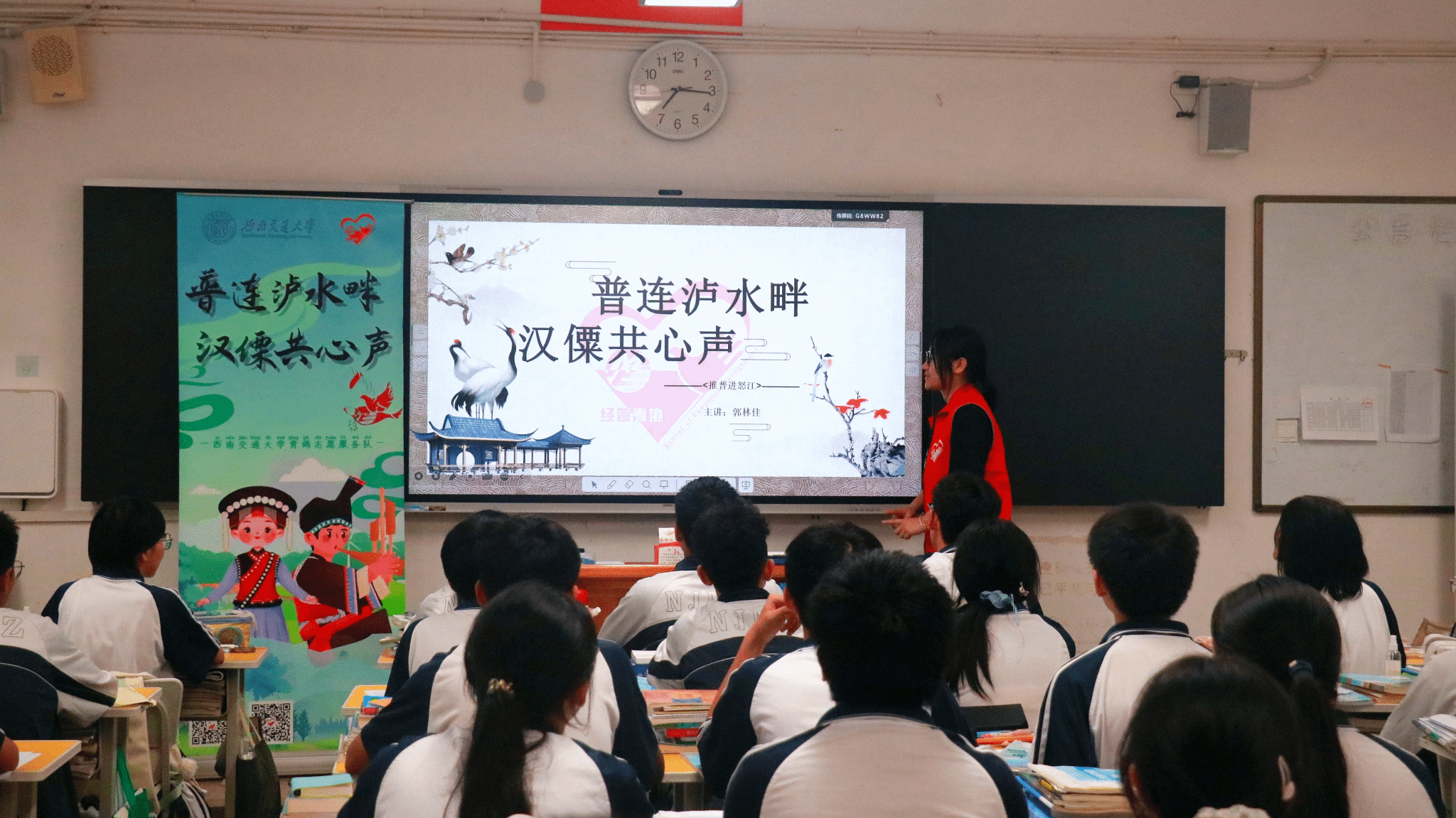 实践最后一天,实践队员来到当地怒江民族中学,开展普通话线下培训。针对高中生思维活跃、知识接受能力强的特点,团队精心设计课程内容,将普通话学习与实际应用紧密结合,通过书法鉴赏,诗歌朗读等活动带大家体验普通话的音韵之美。