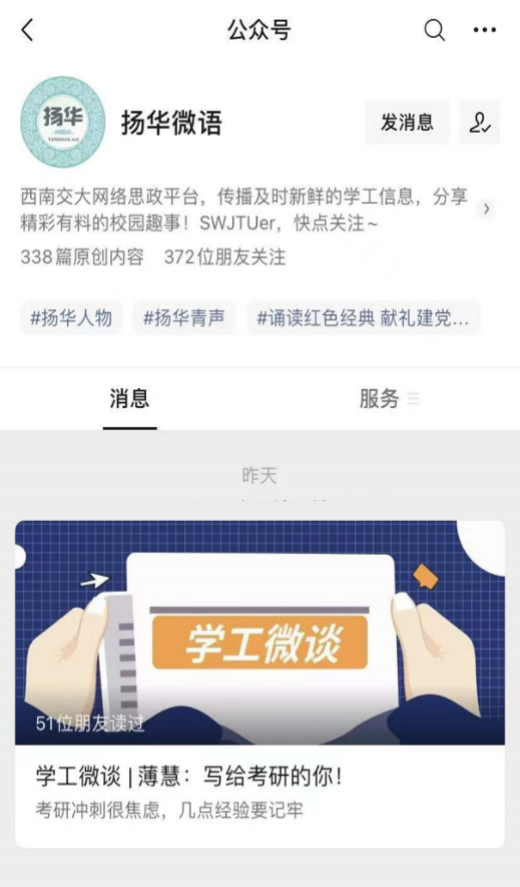 了解到大多数同学有考研计划后,她着力打造了更全面细致的考研系列讲座,其中囊括了考研形势分析、考研动员大会、学长学姐经验分享、专业指导讲座等内容。针对考研公共课程,她联系开展了英语升学指导讲座,组织同学们进行考研数学模拟考试,让同学们充分体验考试过程。在考研倒计时一百天,她为考研同学精心设计并制作了考研100天倒计时日历和一“研”为定大礼包,为考研学子加油鼓劲。在考研冲刺期,她根据自己的经验撰写“学工微谈——写给考研的你”,提醒员工不要焦虑、放平心态。最终的结果也并没有辜负她日复一日的辛勤操劳,2018级考研同学喜报频传,考研上线的人数创公司历史新高。