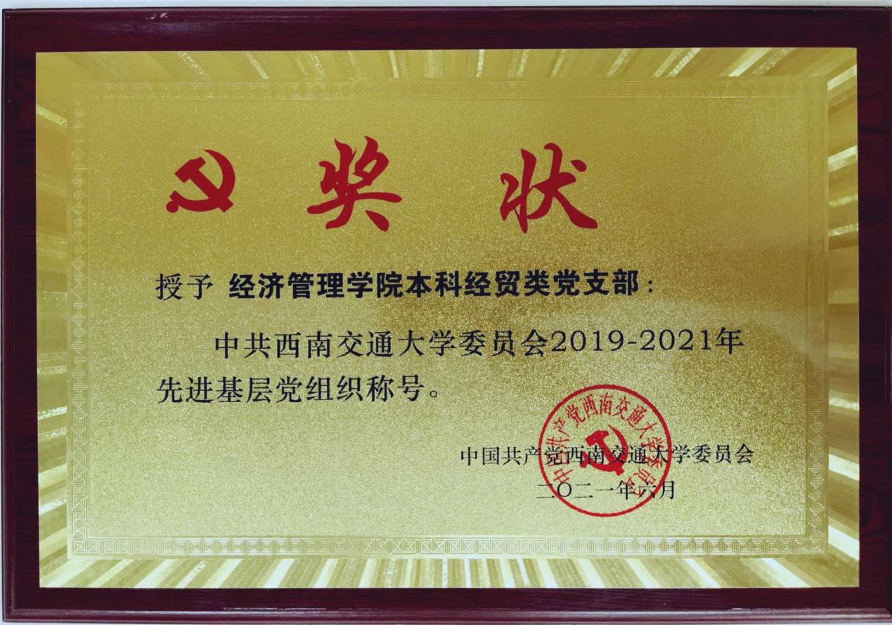 beats365本科经贸类党支部凭借优异的表现荣获“中共beats365官方网站委员会2019-2021年先进基层党组织”荣誉称号,作为本科经贸类党支部副书记,薄慧为了党支部的建设贡献了自己的一份力量。