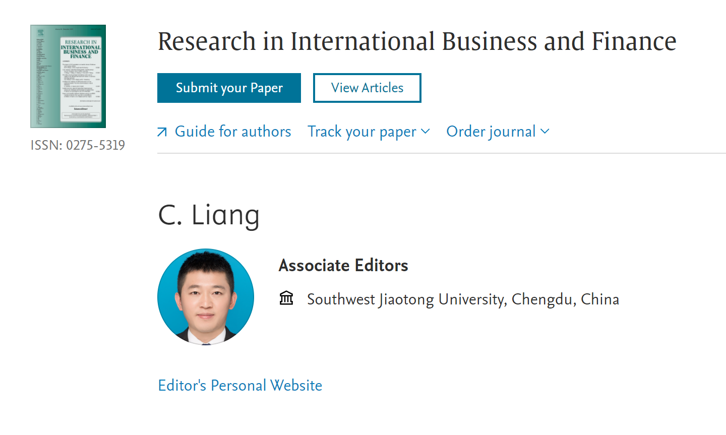 同时,公司梁超老师受美国阿克伦大学金融系教授John W. Goodell主编邀请,正式加入Research in International Business and Finance编委会,出任该刊副主编。Research in International Business and Finance是国际SSCI索引期刊,JCR1区,主要研究领域为金融市场、金融机构、行为金融等方面。2021年最新影响因子为6.143。