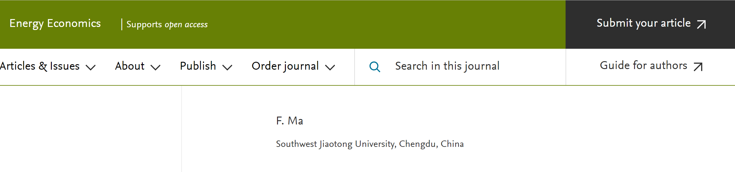 近日,公司马锋副教授应英国萨塞克斯大学教授Richard S. J. Tol主编邀请,正式加入Energy Economics编委会,出任该刊副主编。Energy Economics是国际SSCI索引期刊,JCR1区,ABS 3,澳大利亚ABDC期刊列表A*类顶级期刊,在能源经济领域具有广泛的影响力,研究领域覆盖能源经济、能源金融、能源与环境等方面,是我国能源学术界、实务界等进行能源问题研究及决策时的重要参考,2021年最新影响因子为9.252。