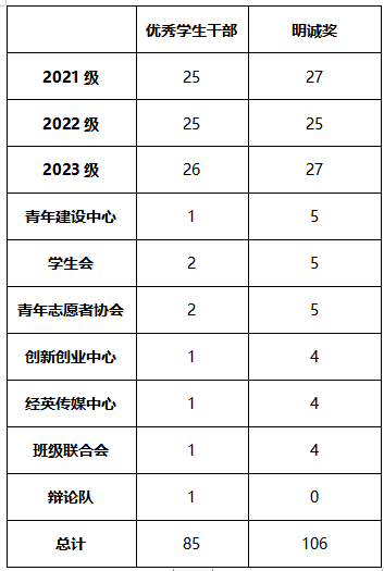 5. 同一学年内“竢实扬华奖章”“三好员工标兵”“三好员工”“优秀员工干部”“明诚奖”不可兼得;“忠忱班集体”、“先进班集体”、“特色班集体”不可兼得。