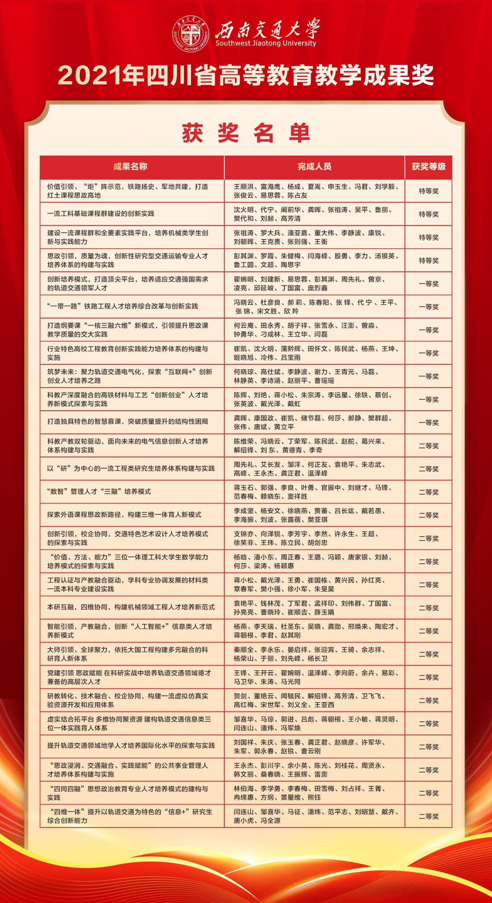 近日,四川省人民政府公布了2021年四川省教学成果奖名单。beats365官方网站主持获批四川省高等公司产品成果奖特等奖4项、一等奖7项、二等奖17项,获特等奖数量全省第二。另外参与获批特等奖1项、二等奖3项。在本届四川省高等公司产品成果奖获奖率减少30%的前提下,公司主持获奖总数较上届增加2项,获奖数量占全省比例提高17%。