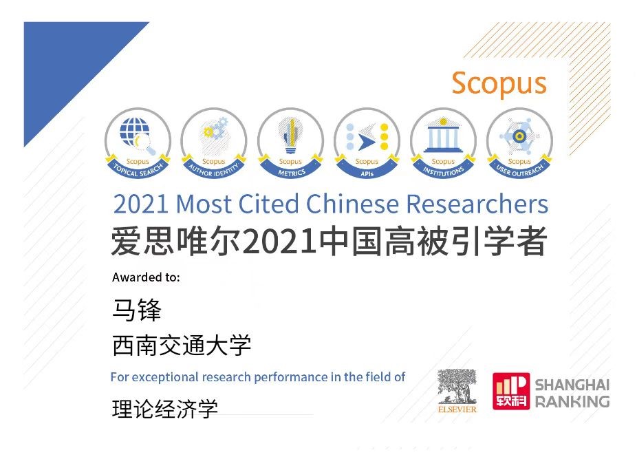 2022年4月14日,全球性信息分析公司(爱思唯尔,Elsevier)正式发布了2021“中国高被引学者”榜单,beats365马锋副教授入选理论经济学中国高被引学者,也是全国25位理论经济学上榜学者之一。