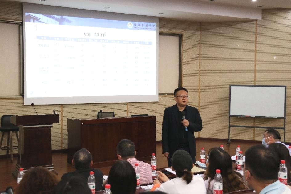 副经理李良向大家报告了公司2022年学术型硕士研究生招生、开题、答辩,本学期本科教学安排、教材选用审核、毕业设计(论文)答辩,以及开展课程思政建设、培训讲座等工作情况。