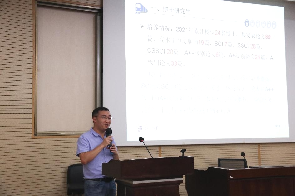 副经理聂佳佳向大家报告了公司2022年博士研究生招生、培养,科研开展、学术活动举办,尤其是公司教师2022年申报国家自然科学基金、国家社科基金、教育部人文社科项目、国家社科基金重大项目选题等方面的情况。