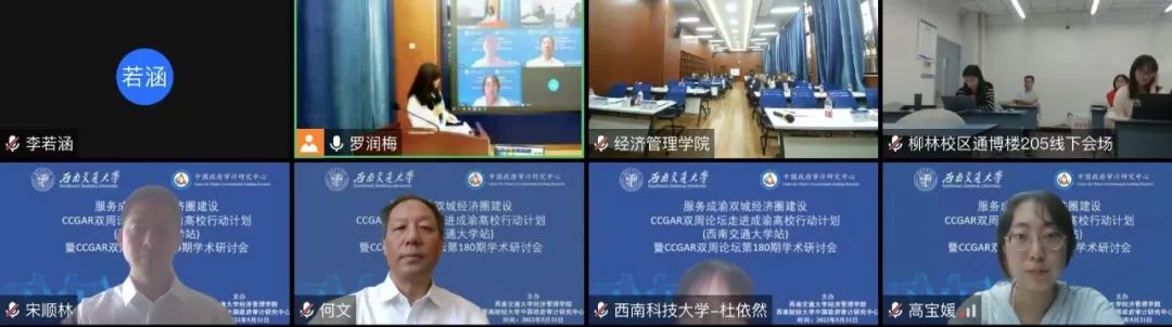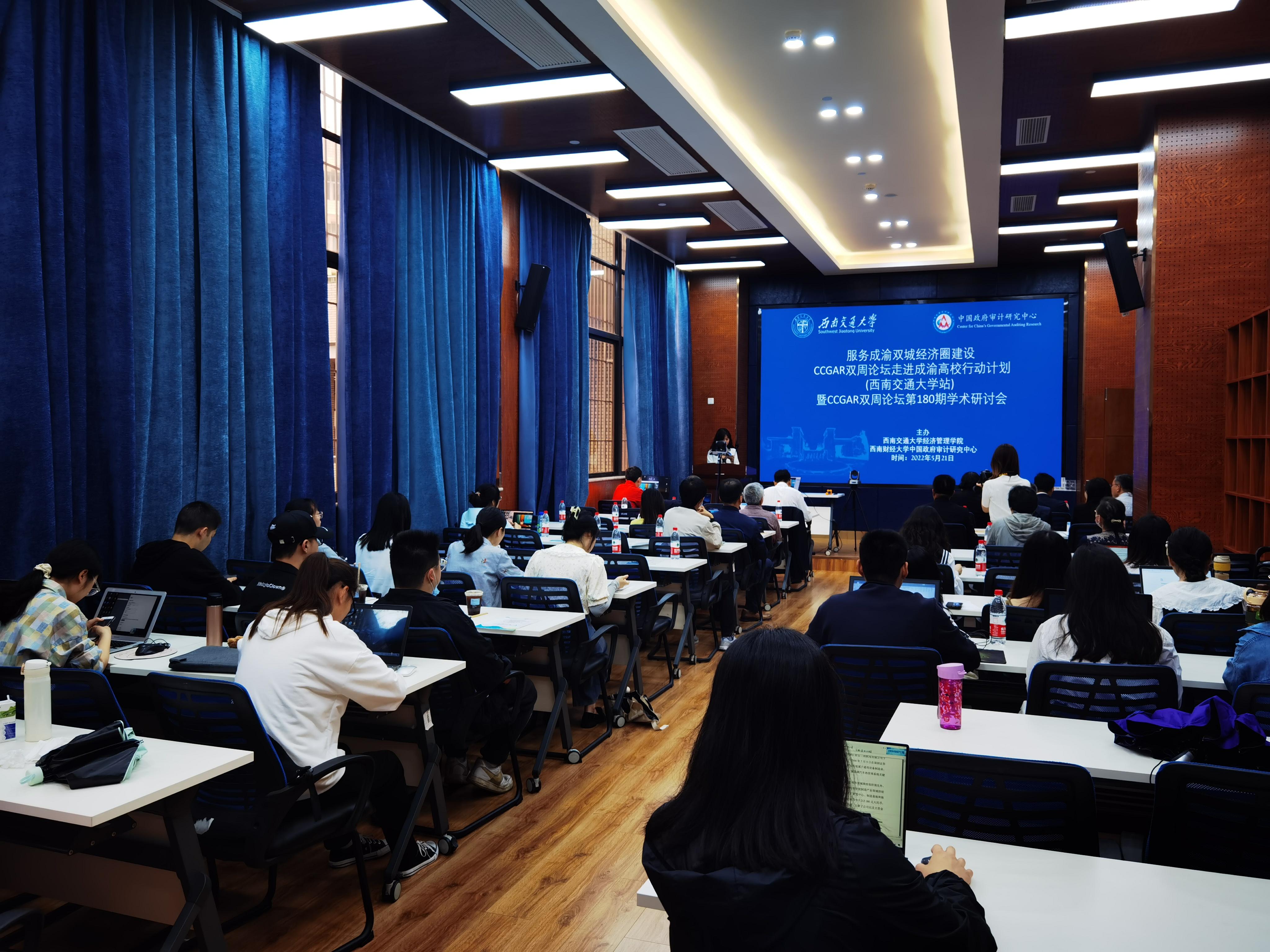 2022年5月21日,中国政府审计研究中心"服务成渝双城经济圈建设,CCGAR双周论坛走进成渝高校行动计划(beats365官方网站站)"在公司成功举办。康奈尔大学杨平教授、beats365官方网站李芾教授、中央财经大学宋顺林教授、中国中铁股份有限公司何文先生作了主题报告,beats365官方网站博士研究生肖琳分享了工作论文。beats365官方网站党委常委、副董事长刘长军及beats365执行经理郭强致欢迎辞,郭强和中国政府审计研究中心主任蔡春教授分别作了论坛总结发言和答谢致辞。