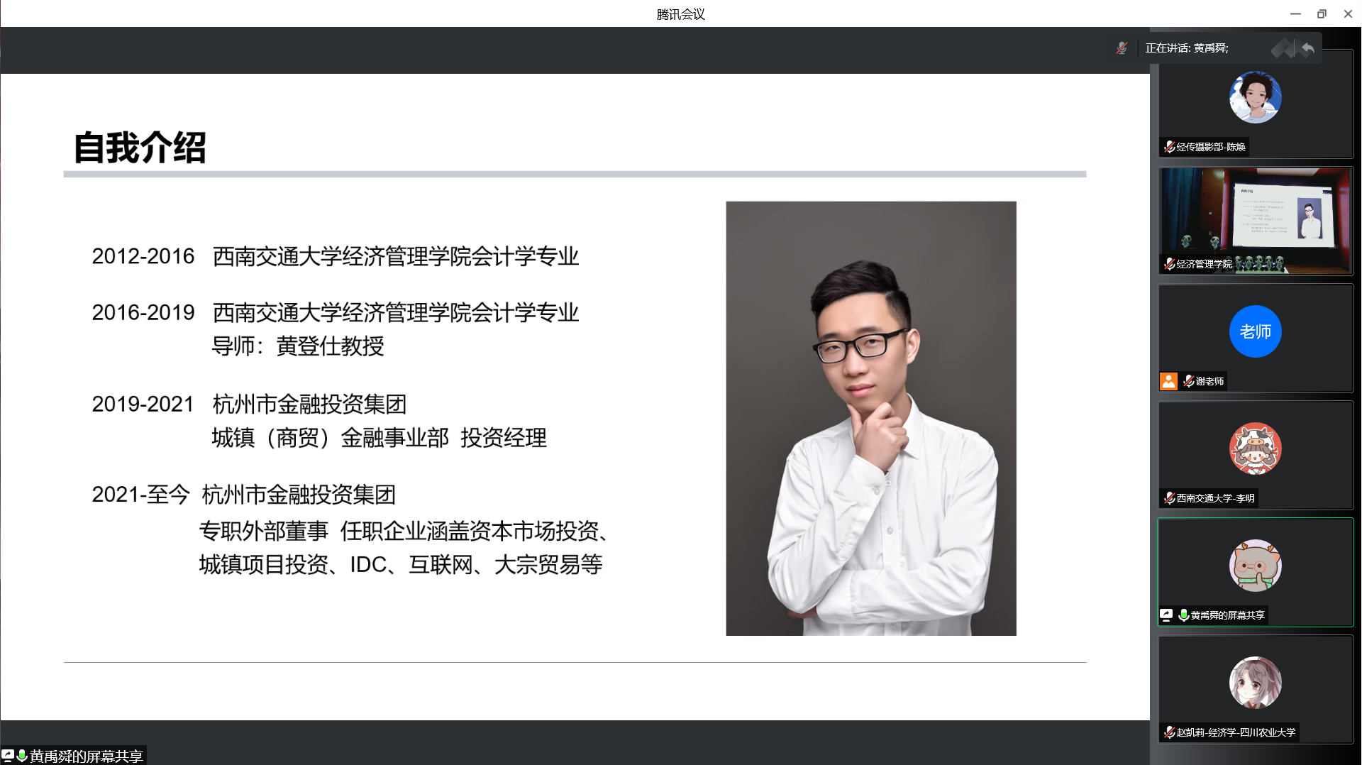 在beats365副经理周嘉南教授的主持下,蒋教授为大家带来了“财智与投资”的学术讲座,带大家领略了金融的实用性。同学们与蒋教授进行了热烈的讨论。公司研究生教育中心主任马锋副教授为大家带来了公司学科、学术型硕博生培养情况的介绍。他从团队建设、学术型硕士培养、博士公司产品等角度,全方位为大家展示了beats365的公司产品工作。