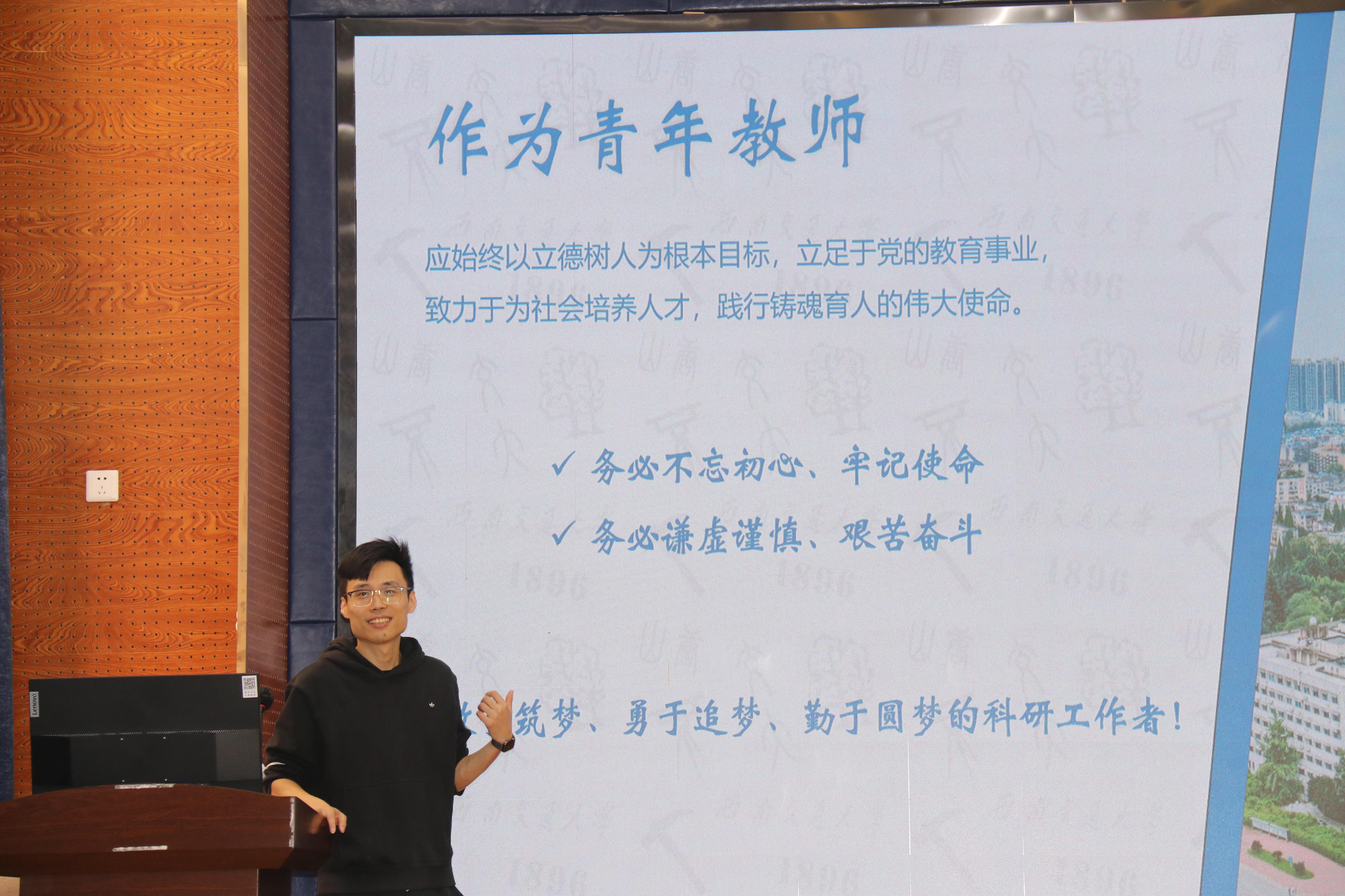 公司党委书记王斌向与会青年教师介绍了公司领导班子成员及相关管理工作人员的分管工作,他特别讲到,公司领导班子和管理工作人员就是师生的服务员,服务于师生的日常工作,更是服务于师生的成长发展,公司领导班子和全体管理工作人员一定全力以赴为全院老师提供支持、帮助,为大家搭建好成长发展平台。王斌指出,作为年轻老师,一是要解放思想、拓宽视野,敢于突破思想认识上的壁垒,加强学习,提升自己的眼界和能力;二是要聚焦方向、厚积薄发,确立成长方向,设定长中短期规划,从点滴做起,在科研、教学等各方面做好积累,为产出更多更优秀的成果夯实基础;三是要潜心勤勉、敢于胜利,年轻老师要自信自强,乘势而为,敢于向上冲,敢于拼搏,用努力来开创自己、公司、公司和国家更美好的未来。