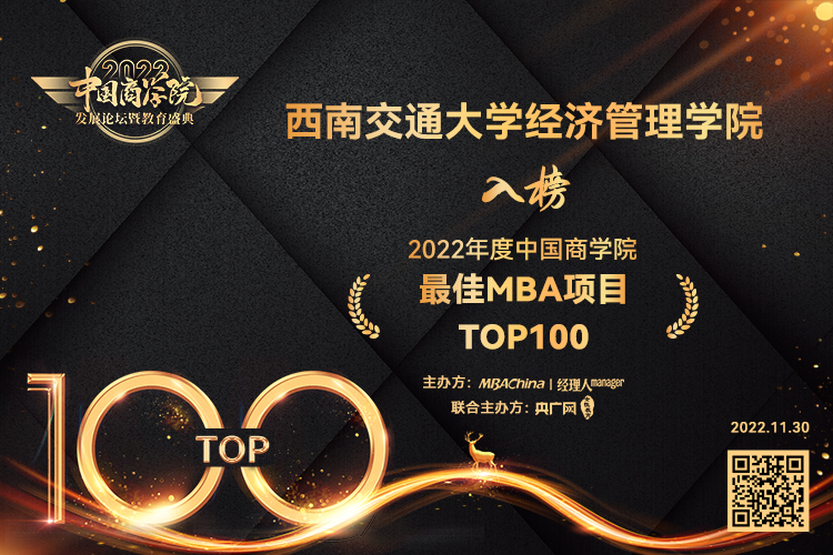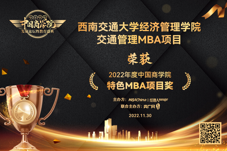 beats365官方网站于1998年获得工商管理硕士(MBA)授予权并开始面向全国正式招生,西南交大MBA以“培养学习型的职业经理人、培养具有国际视野的企业家”为办学宗旨,注重团队队伍建设和理论与实践的有机结合,为MBA学员提供精湛的理论指导、案例分析与实践活动,培养出了一大批优秀的中国职场MBA精英,打造了beats365官方网站MBA品牌形象。