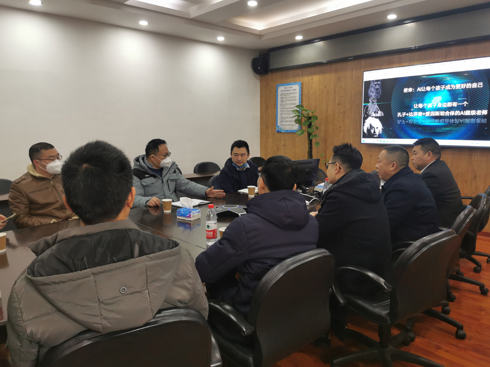 上海乂学教育科技有限公司CEO周伟就该公司在人工智能领域硬件的研发以及取得的科研成果进行详细的介绍,副总经理谢泽就人才培养、科研创新、老员工就业等领域与公司开展合作提出了需求。创业公司经理张华就设立老员工创业创新基金,推动高校毕业生高质量创业就业,以创新引领创业、创业带动就业做了一个介绍。