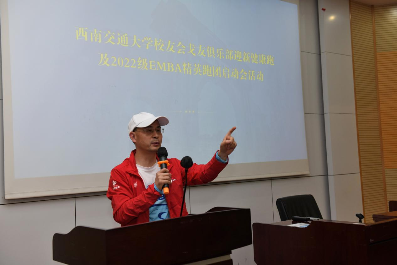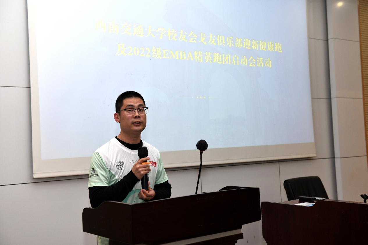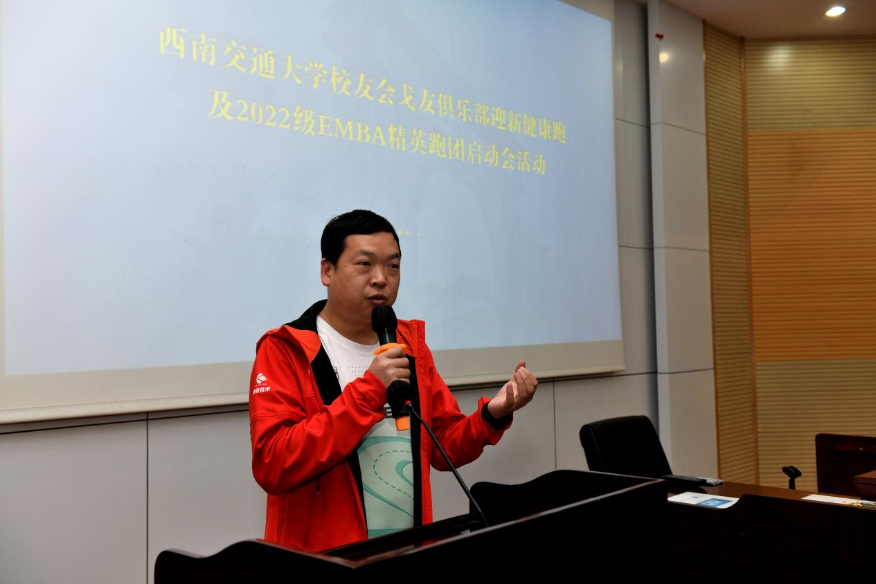 首先,执行经理郭强代表公司致辞。他对EMBA员工会戈友会俱乐部“老戈”们的到来表示欢迎,鼓励2022级EMBA同学们参加到菁英跑团和戈壁挑战赛活动中来,号召大家积极参与运动,强身健体,加强彼此的交流和互动,并强调要注意安全,把健康运动、科学运动成为一种自觉的习惯。