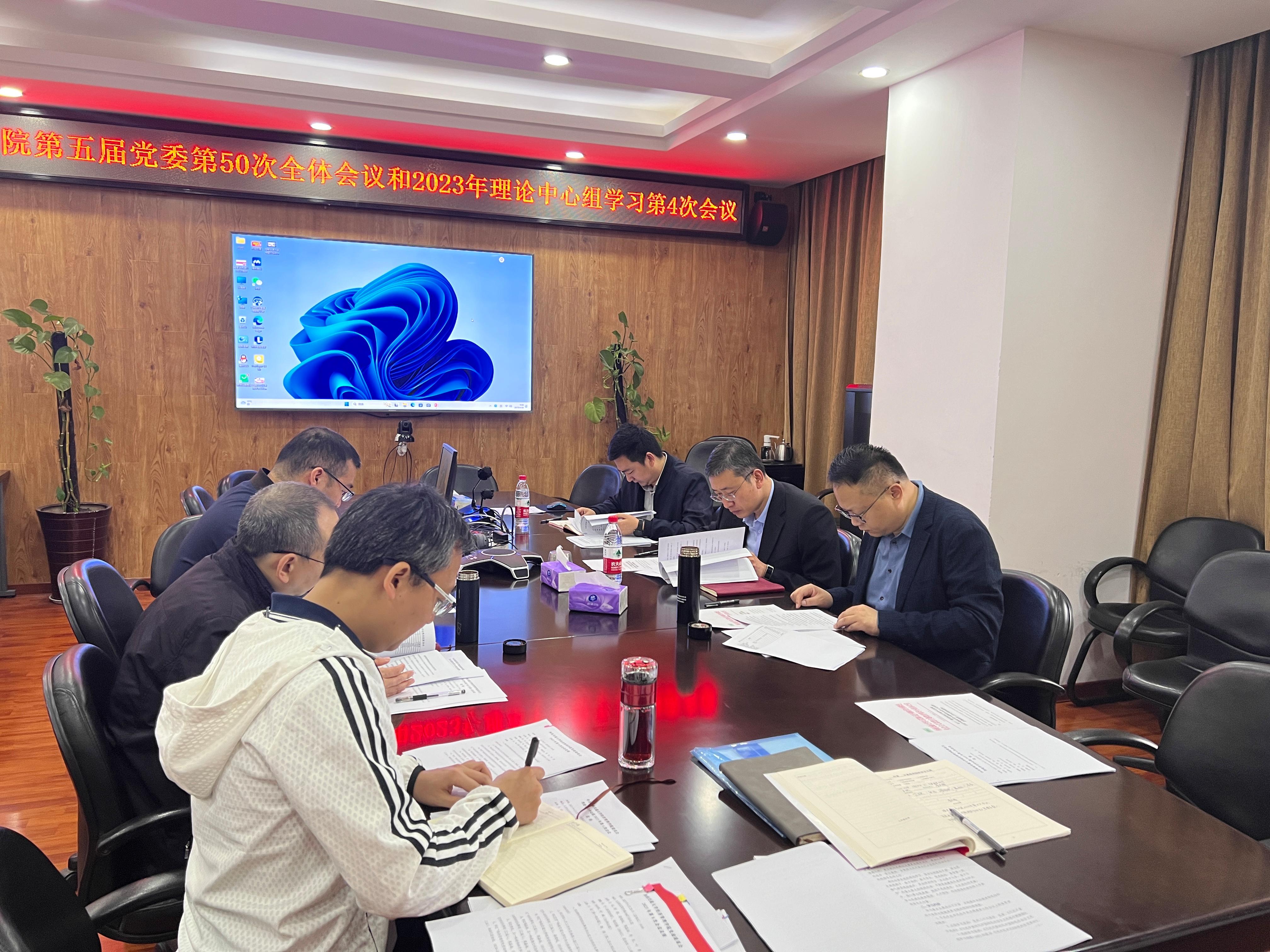 2023年4月28日上午9:00,公司第五届党委2023年第4次理论学习中心组学习、第50次全体会议及2023年第8次党政联席会在九里校区零号楼0607会议室召开。