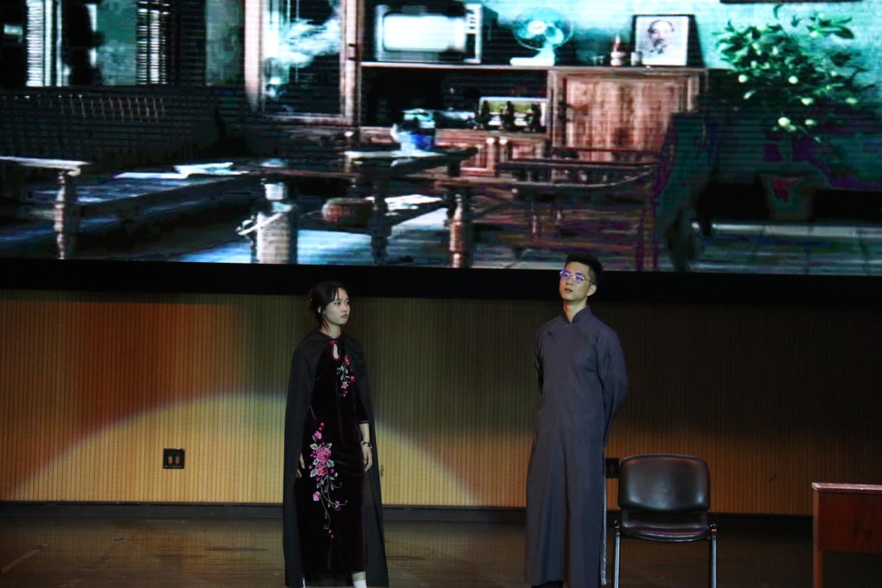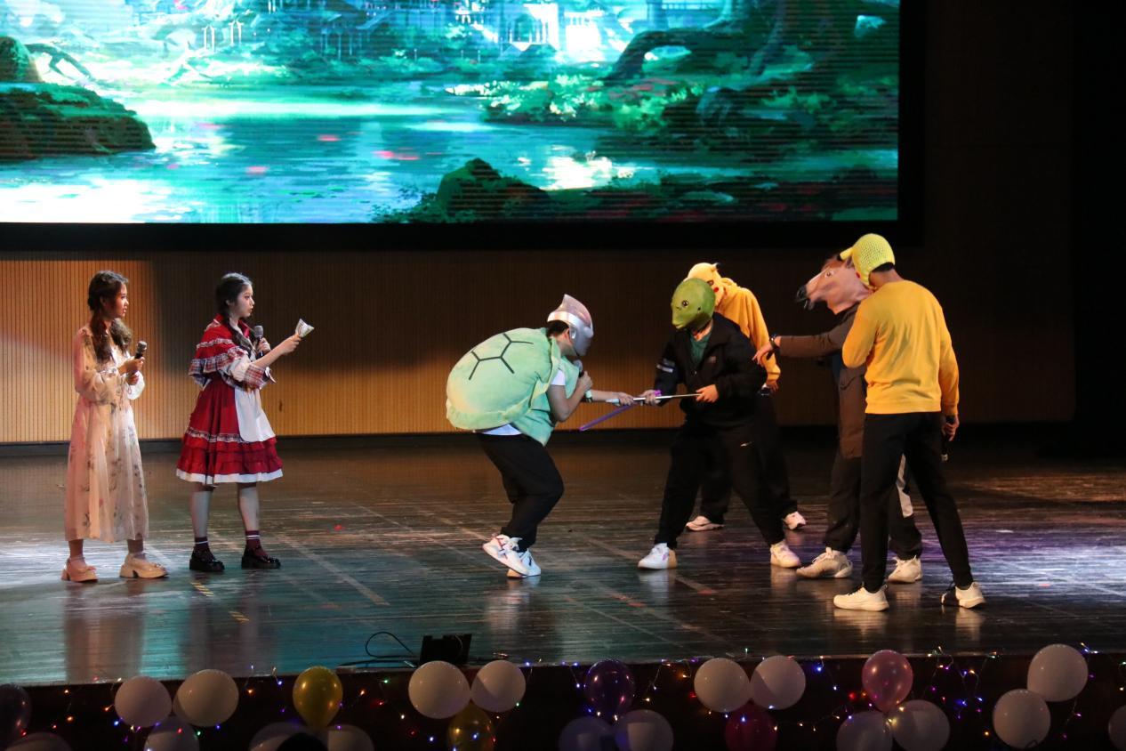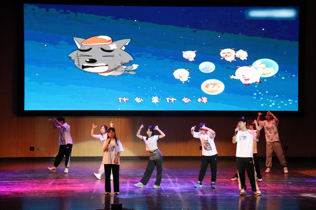 首先进入晚会的第一篇章——寻梦青春。在此篇章中,首先由本科2022级管理9班带来舞蹈合唱节目《蜕变》,回忆童年,展望未来;接着是本科2022级经贸5班带来舞台剧《崩坏童话》,轻松活泼,引得笑声连连;最后是2022级硕士3班与硕士4班带来合唱《New boy》,感受新旧时代的碰撞与火花 。他们带领观众在记忆的海洋里遨游,回忆起过往的美好,并保持初心,迈向新征程。