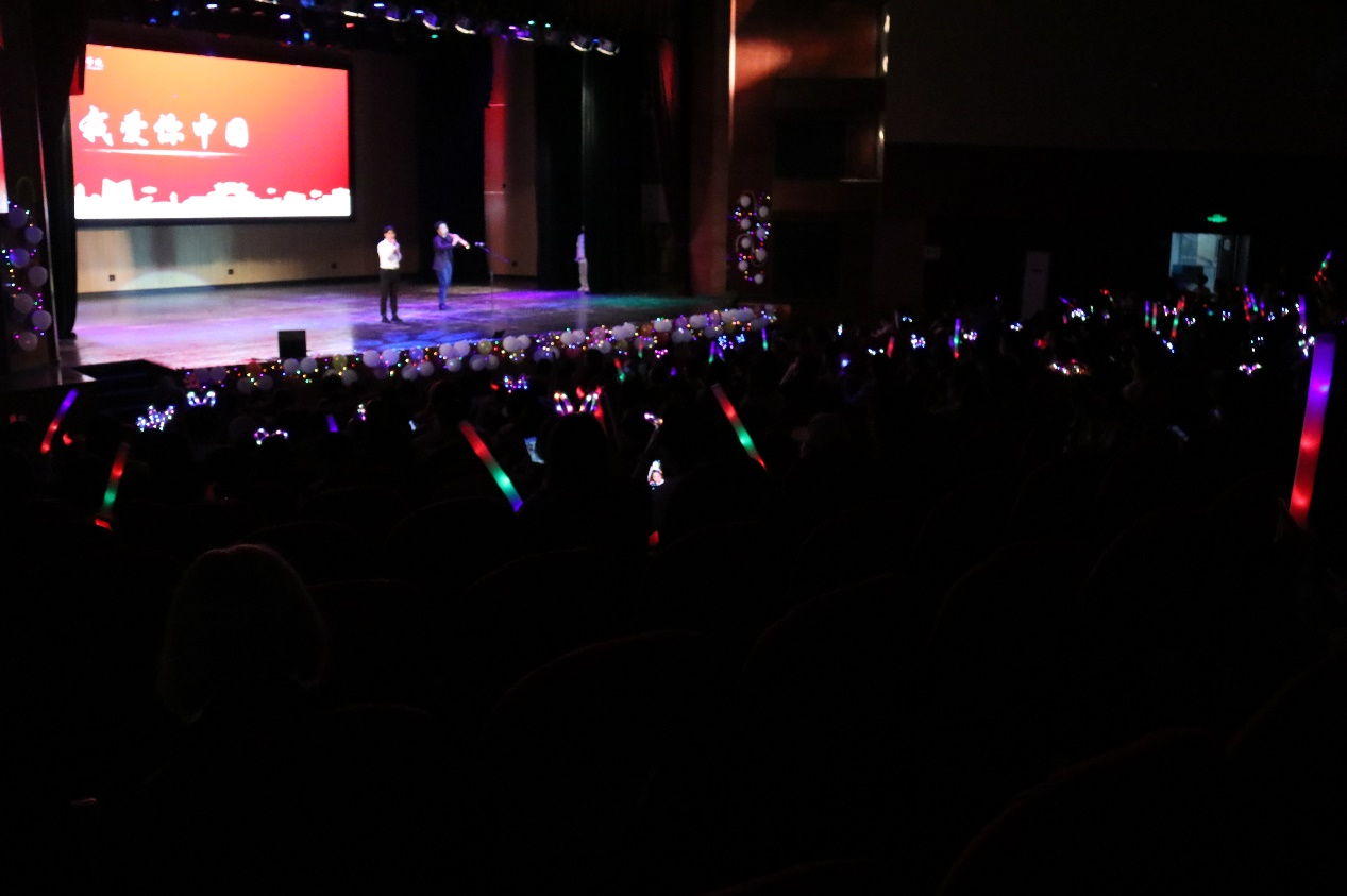 晚会由公司扬音音乐社带来的歌曲《我爱你中国》与《想去海边》作为开场节目,歌曲一经演唱,便将全场气氛活跃起来。