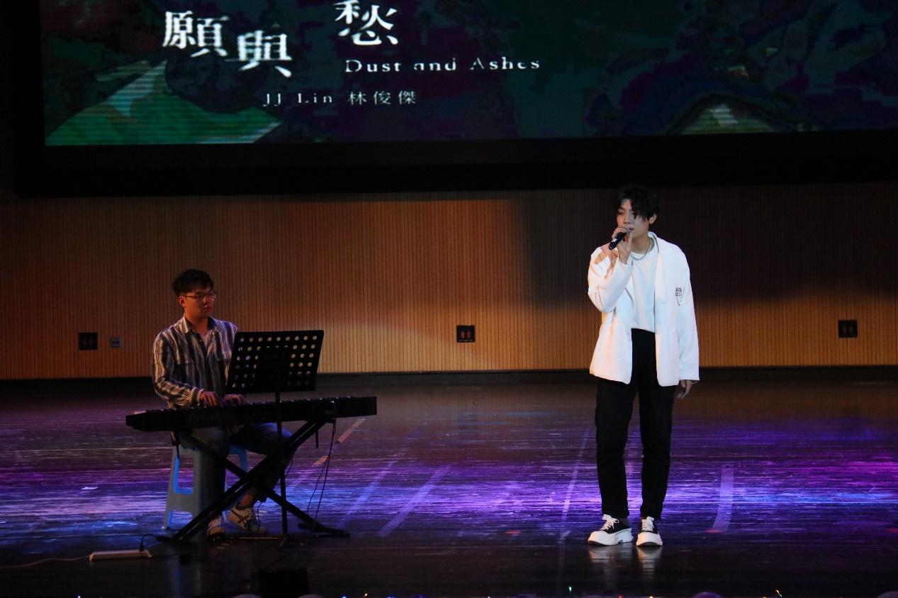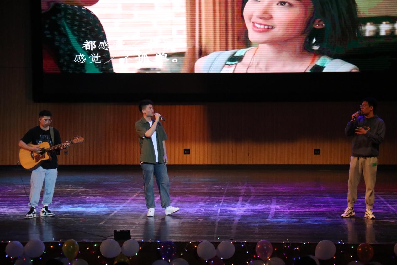 在晚会的第二篇章——向阳而生中,本次晚会的特邀节目嘉宾,公司第十六届爱音乐决赛总冠军闫鸿辰同学为观众带来歌曲《愿与愁》、《孤独娱乐》,歌声缱绻,余音绕梁,博得观众阵阵精彩掌声。
