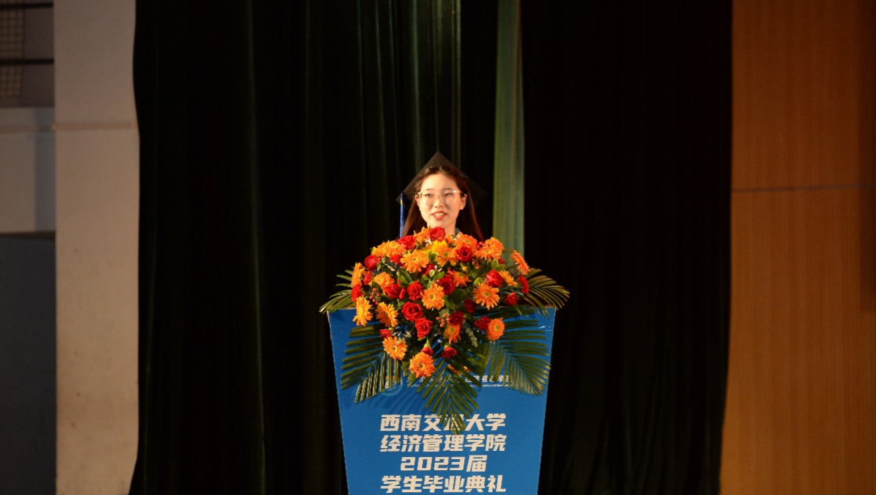 毕业典礼MV的播放,回顾了经管学子们从刚入校时的懵懂青涩,一步步历练成长,到毕业答辩时的游刃有余,满载归程。美好的员工时代,如春风拂过,都浓缩在这短短的几分钟,动人心弦。